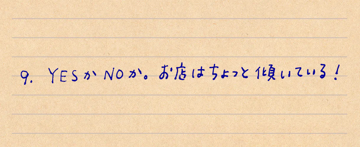9.YESかNOか。お店はちょっと傾いている!