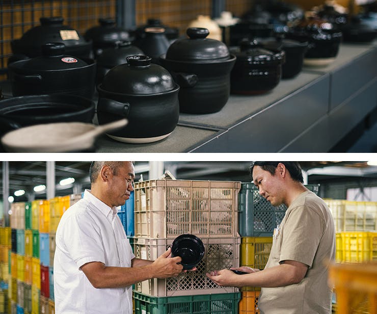 ご飯土鍋に詳しく目利きのプロである佐治社長、土鍋作り40年の職人の秋野さん。お二人の力を借り理想の土鍋を完成させるため、長い時間と多くの試行錯誤を重ねました。