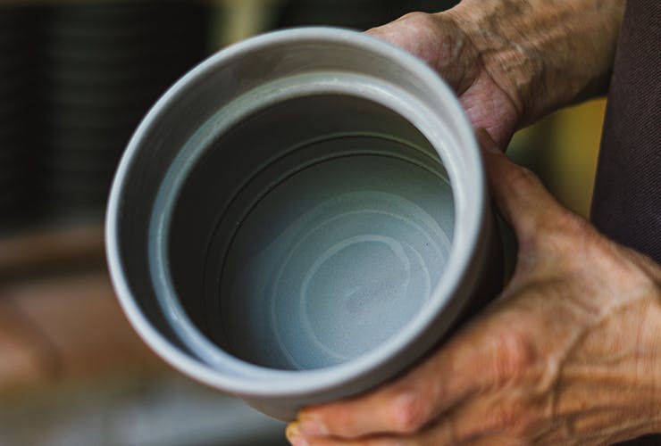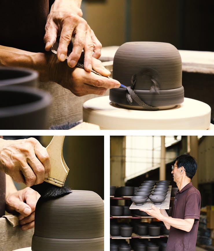 土鍋の厚みを均一にできるのは、職人秋野さんの熟練の技があってこそ。手作業で一つずつ成形します。