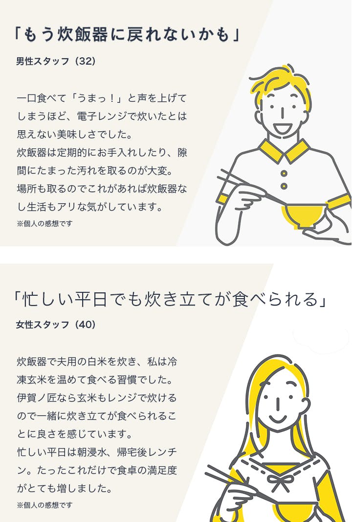 「私は柔らかめが好きだけど、家族は硬めが好き」という方や、「夫は白米派、私は玄米派」という方にも伊賀ノ匠をぜひ使っていただきたいと思っています。
