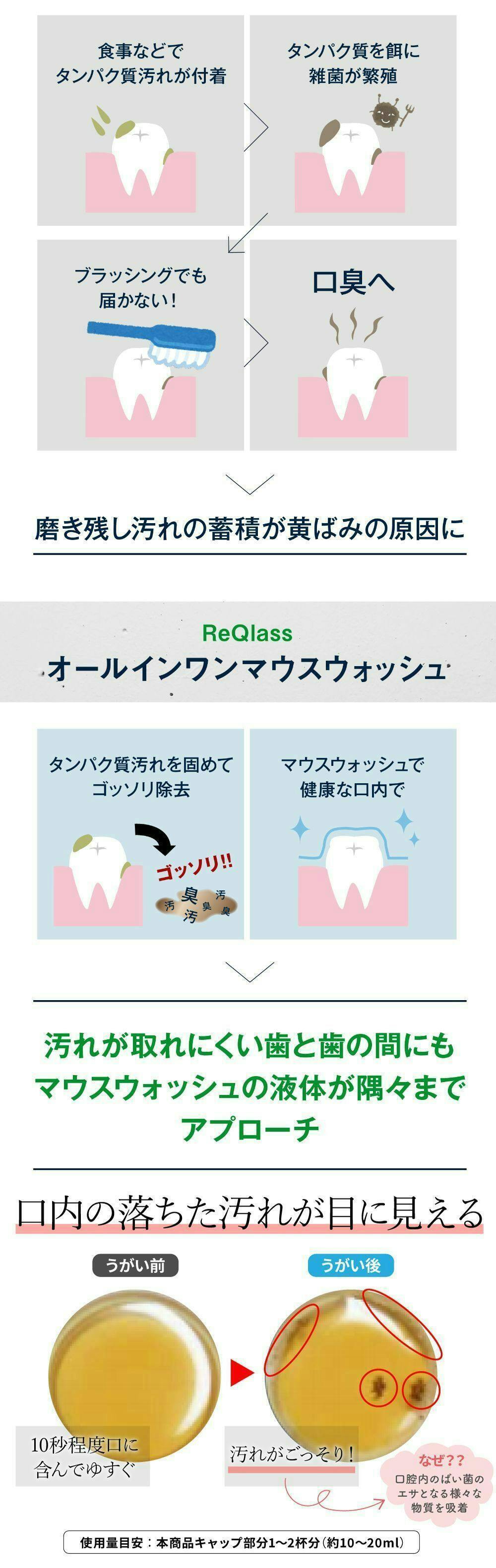 オールインワンマウスウォッシュに含まれている配合成分によってタンパク質汚れを固める性質があります。
