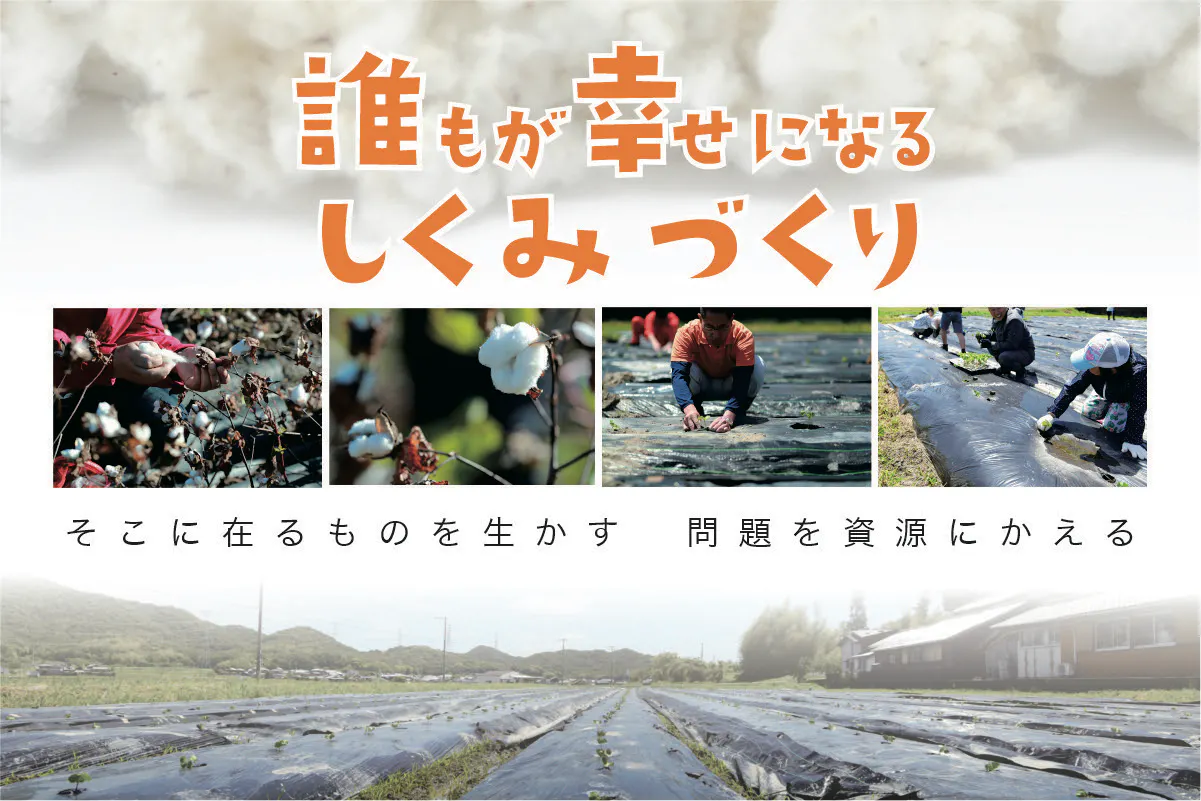 また、農福連携にも取り組んでいます。具体的には、就労継続支援B型(障がい者)事業所等が綿花の種まきと収穫を行い、かこっとん(株)に販売する仕組みをつくっています。