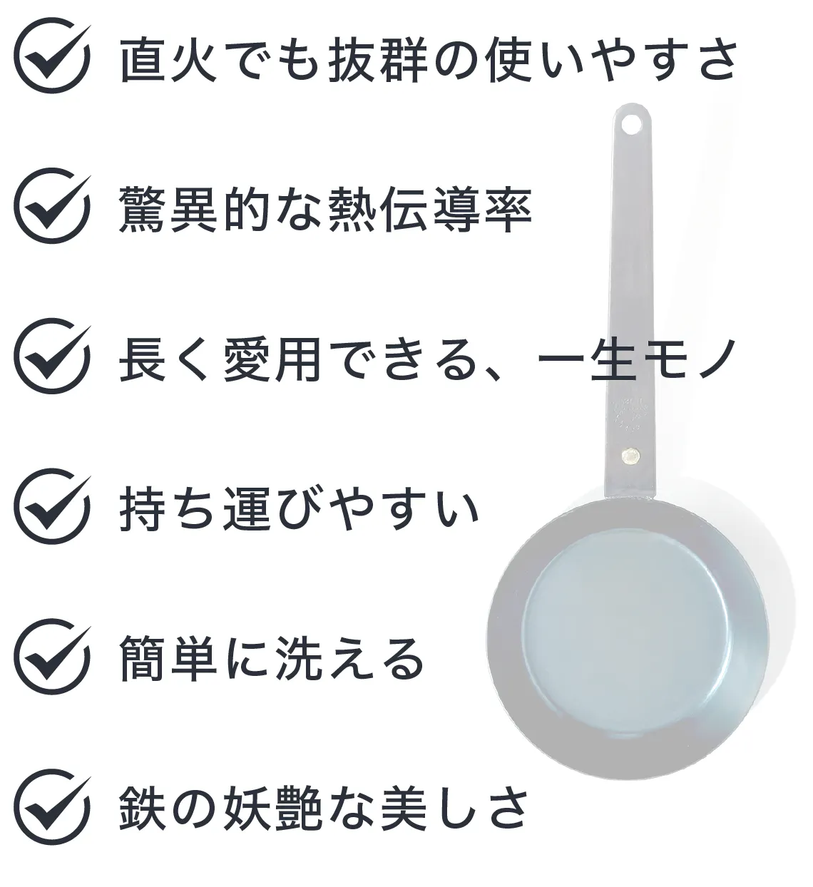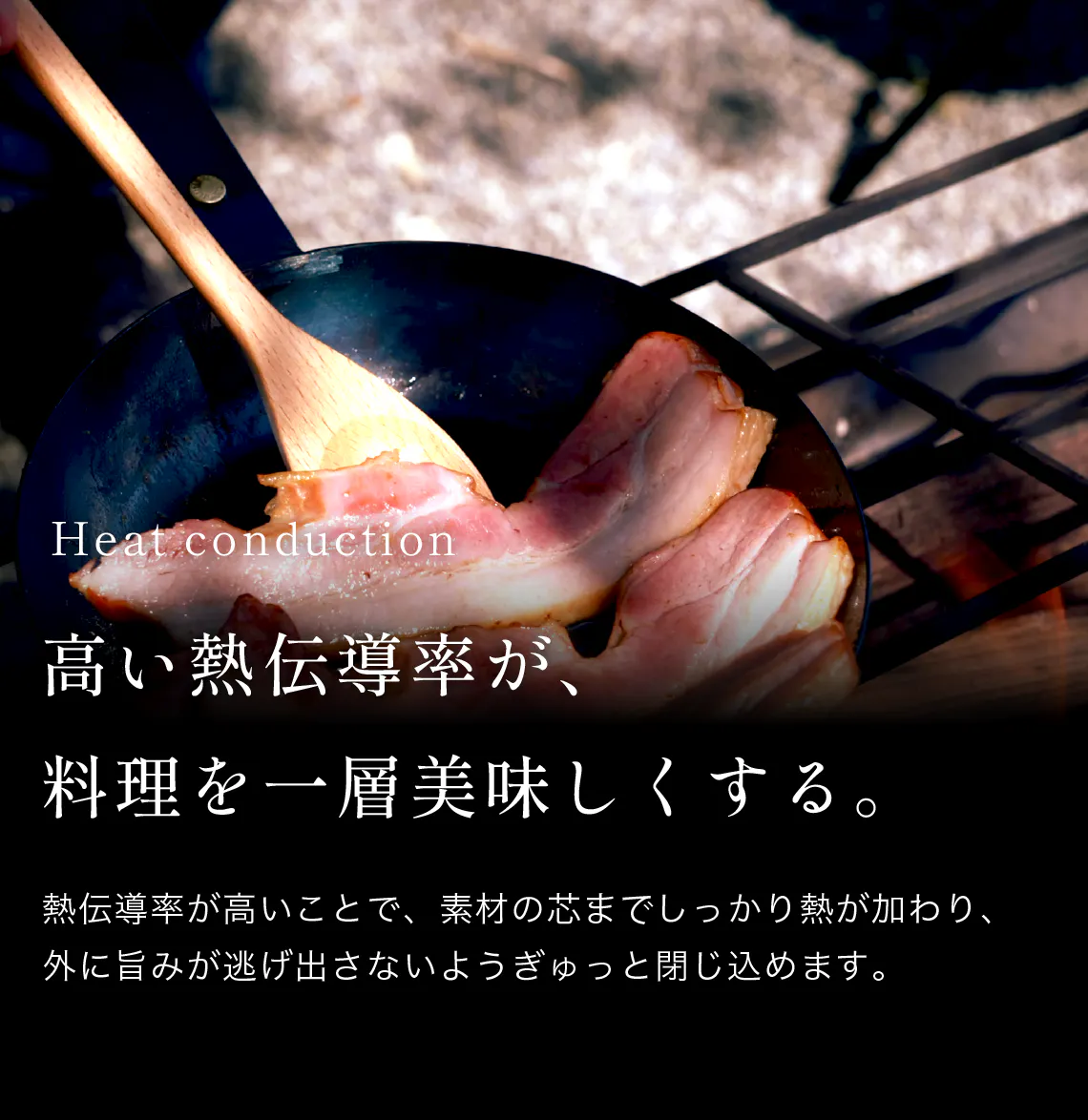 鉄は蓄熱性も非常に優れているため、同じ火加減でも他の材質と比べてすばやく温まります。