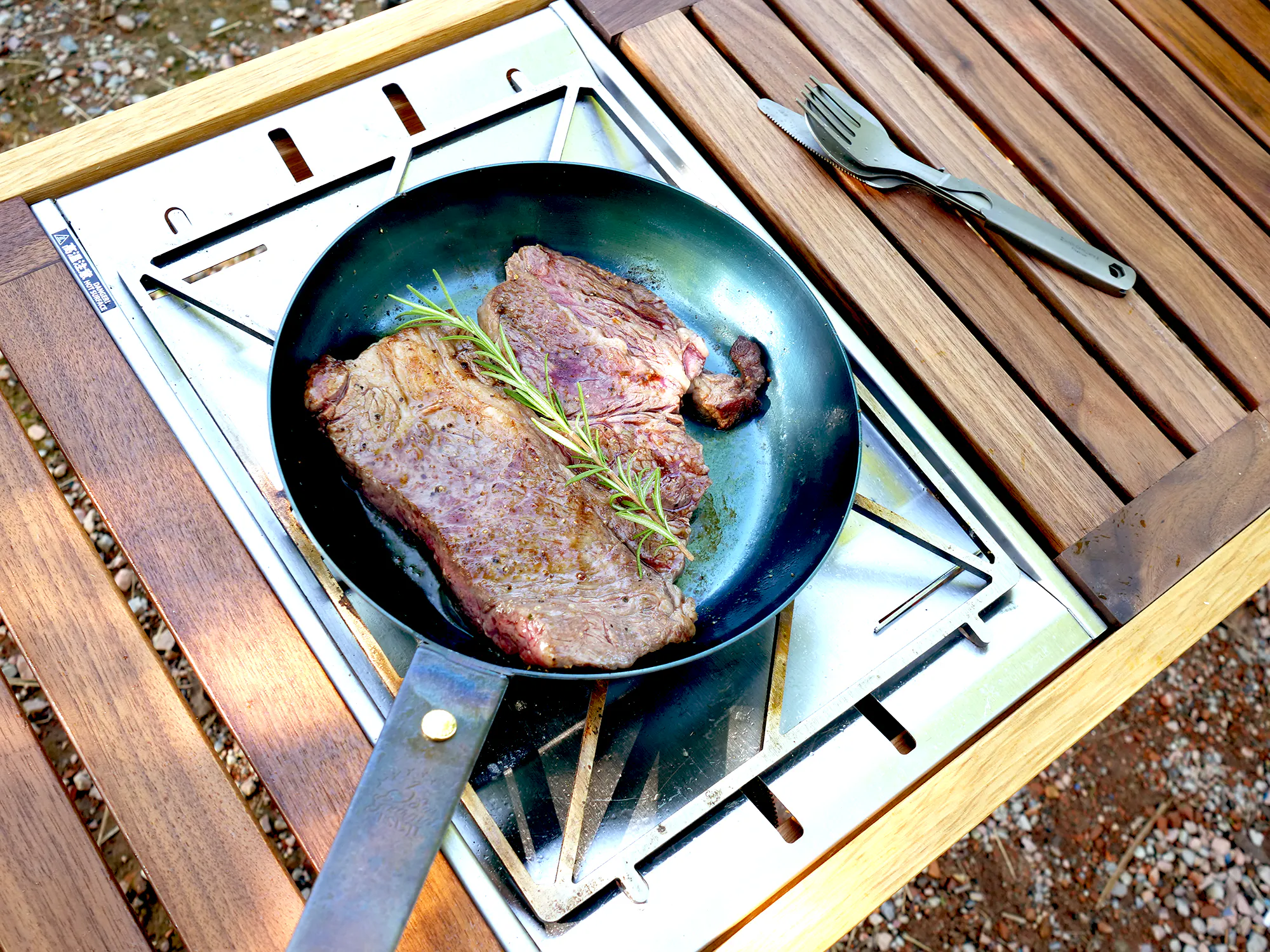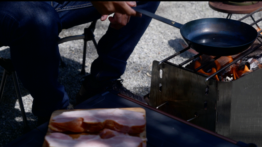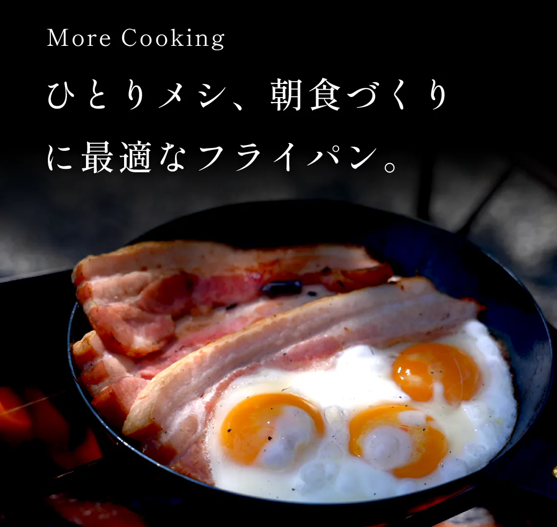 また、このフライパンはソロキャンプ愛好者にもおすすめです。コンパクトなサイズで、焚き火上での調理から手入れまで、どのシチュエーションでも活躍します。朝食から夜のごちそうまで、このフライパン一つでさまざまな料理を楽しむことができます。