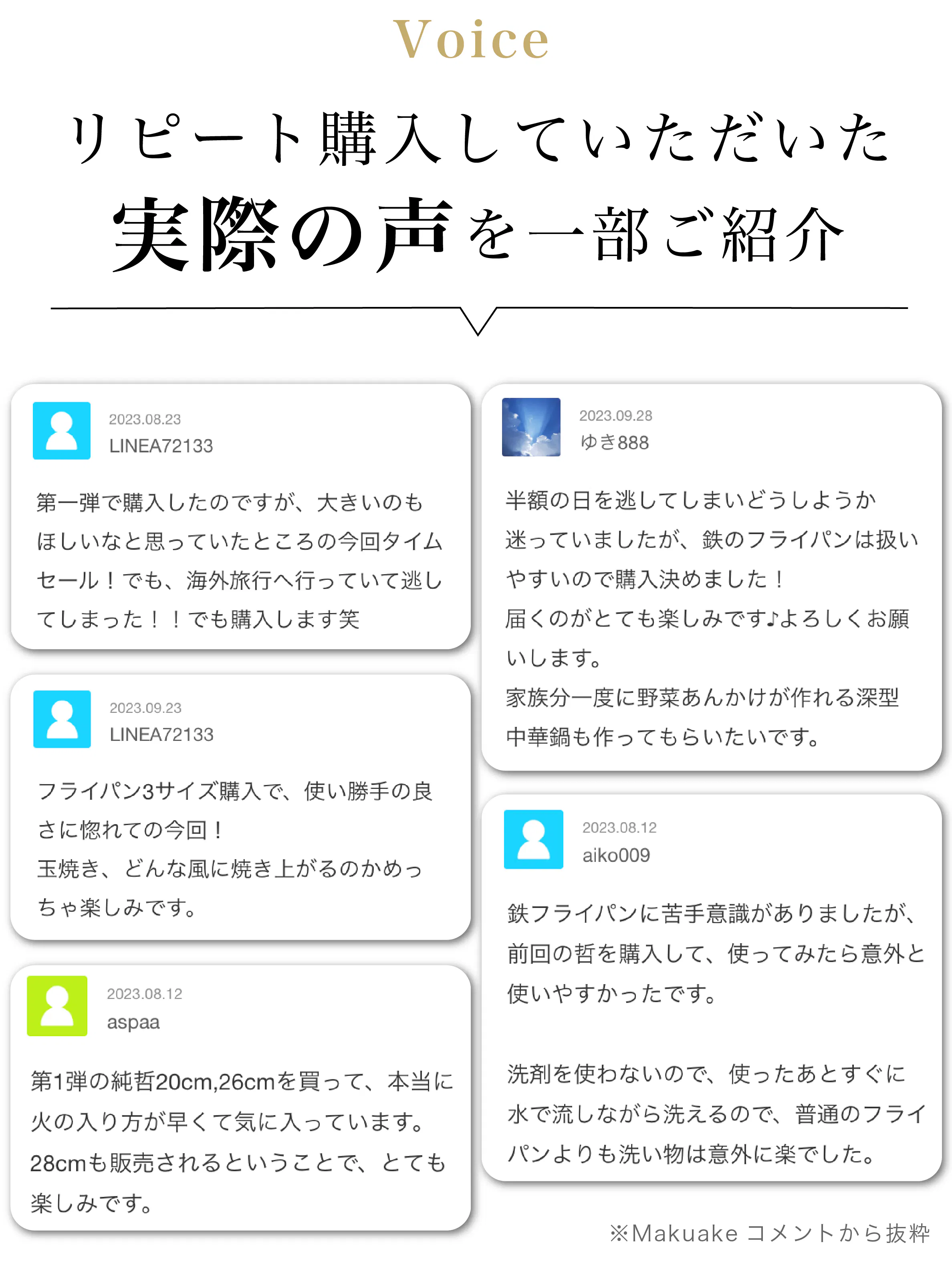 2024/07/26 14:44こんにちは!5 Star Gourmetの辻です。この度、私たちから新たな挑戦が生まれます。初となる、小さくて扱いやすい鉄製小鍋「ソースパン-哲-」の登場です。新商品は7月31日 8:00時から、Makuakeでの販売がスタートします。詳細はこちらからご覧ください。https://5star-gourmet.com/pages/sauce-potさらに、アンケートに回答していただいた上で、初日に応援購入していただくと使えるMakuake500円クーポンと、Amazonギフト券300円分の合計800円分をプレゼントしています!この機会に是非ゲットして、お得に「ソースパン-哲-」を手に入れてくださいね。【プレゼント応募はこちら】 https://s.lmes.jp/landing-qr/2000221110-kXeR6zwl?uLand=bxm0p6いつもあたたかいサポート、心から感謝しています! 今後も皆様に満足いただけるよう、新商品の開発に取り組んでいきます!! この機会に、LINEにて配信している500円オフMakuakeクーポンと300円Amazonギフト券を是非ご利用ください。 もっと見る【深型鉄フライパン28cm】本日(5/31)でプロジェクト終了となります!
