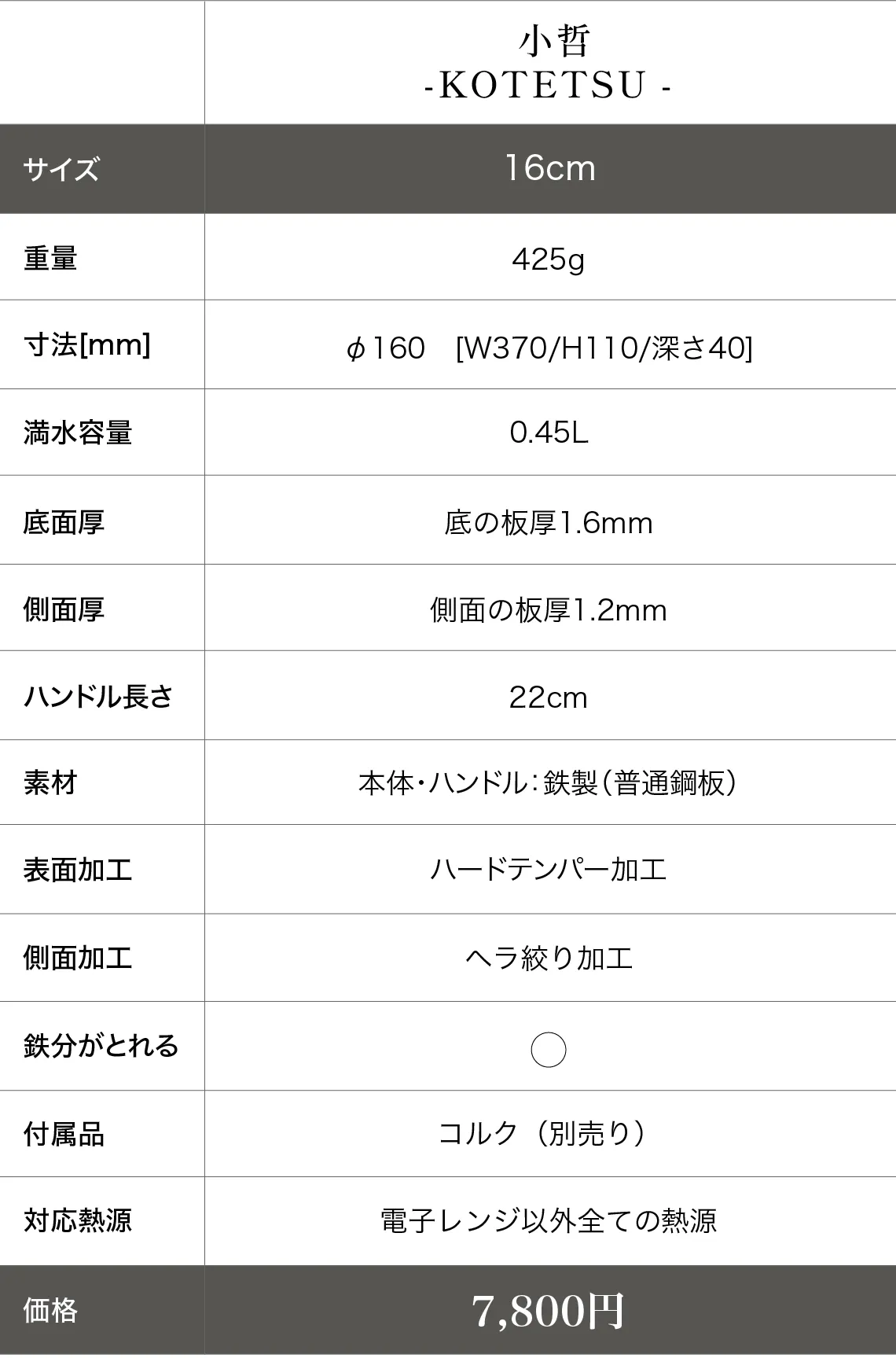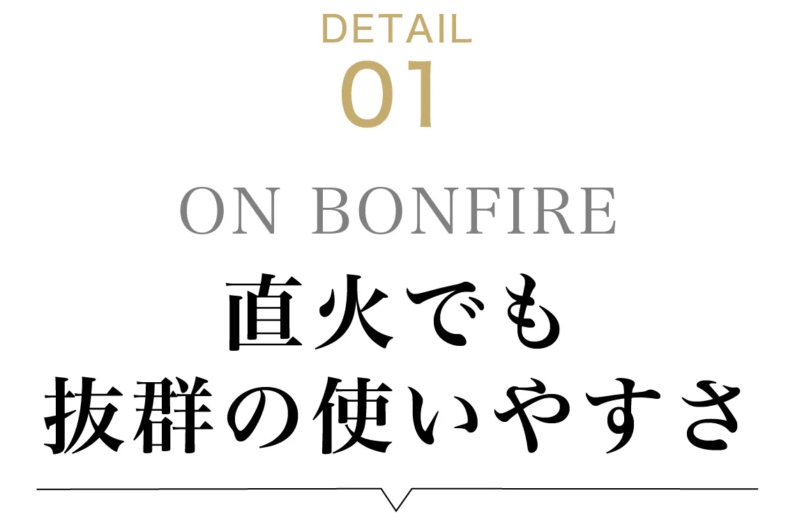 ▼燃えたり溶ける心配がないハンドルが、木製や樹脂製だと燃えたり、溶けたりする可能性がありますが、小哲はハンドル部分も鉄製のため、そのような心配がいりません。