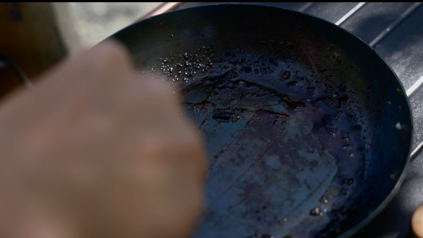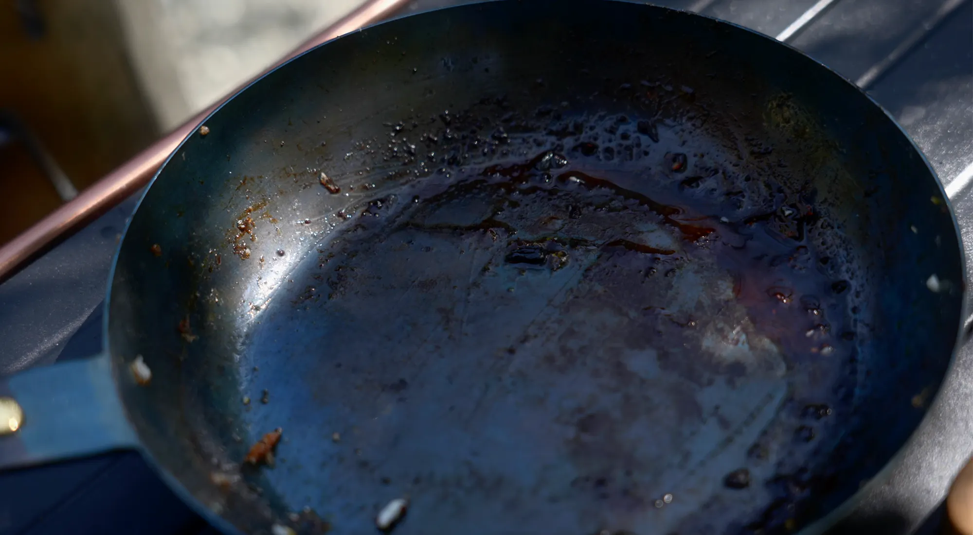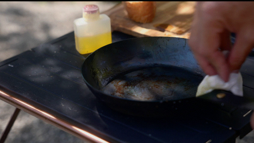 フライパンに油が馴染んで薄い油の膜が定着すると、焦げ付きにくくサビにくくなっていきます。