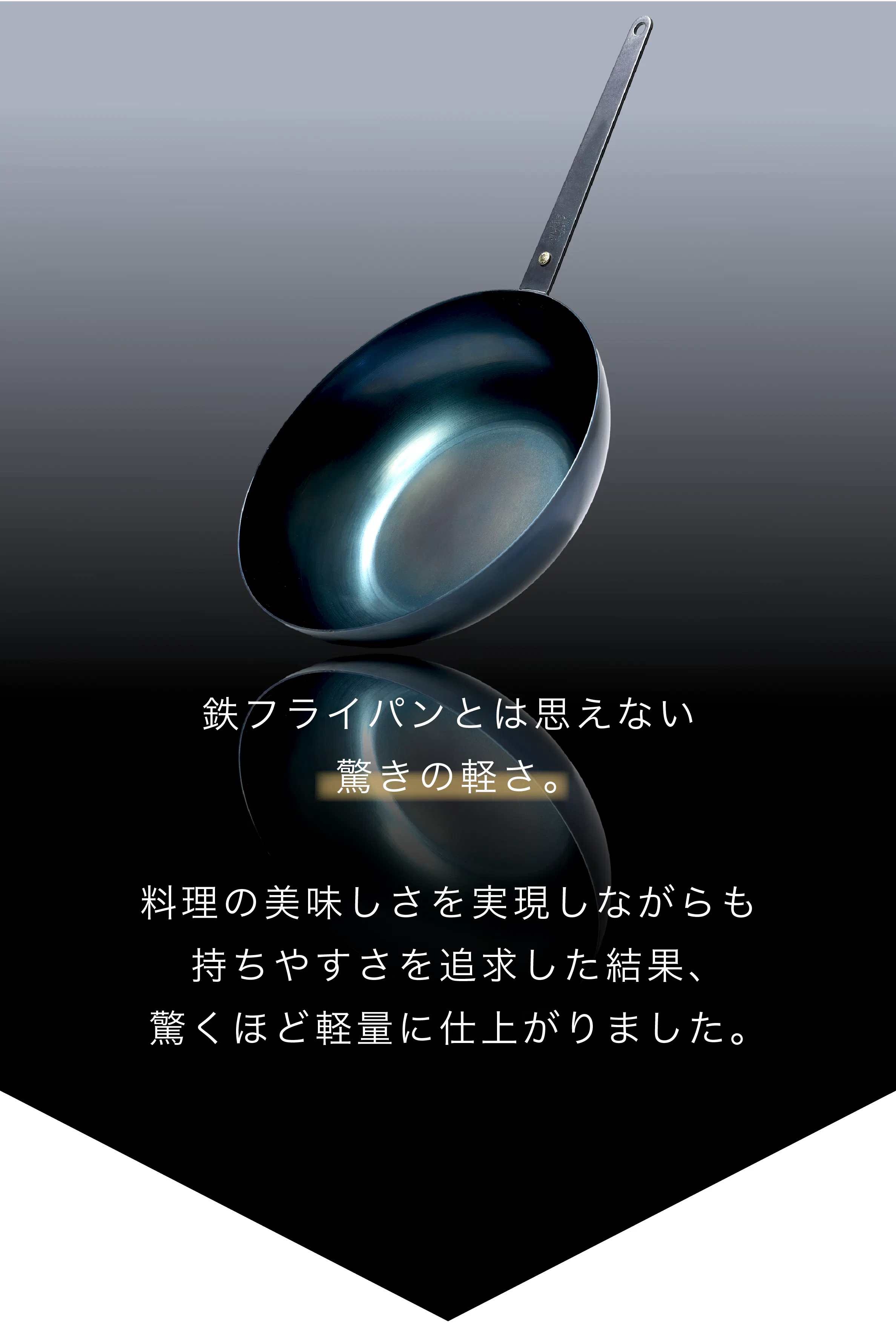 その結果、鉄フライパン哲(TETSU)は、驚くほどの軽量化を達成しています。この軽さは、料理中の操作性を高め、使いやすさを向上させます。このように、へら絞り加工は、フライパンの性能と使用感を大きく左右する重要な工程なのです。