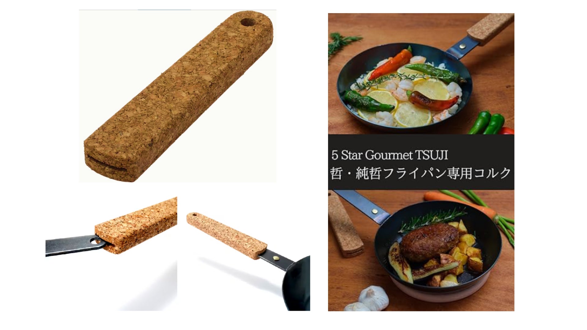 熱の保護: 鉄フライパンの持ち手が熱くなるのを防ぐため、専用コルクは熱から手を保護します。