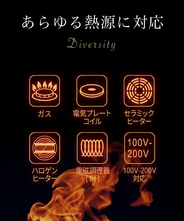 純哲・哲フライパンは、あらゆる熱源に対応しております。