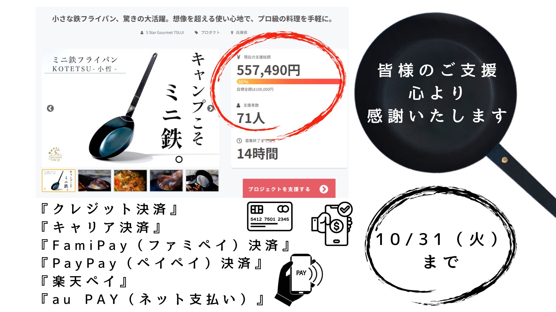 10/30 18:00以降~プロジェクト募集終了(10/31 23:59:59)までに決済可能なお支払い方法は、