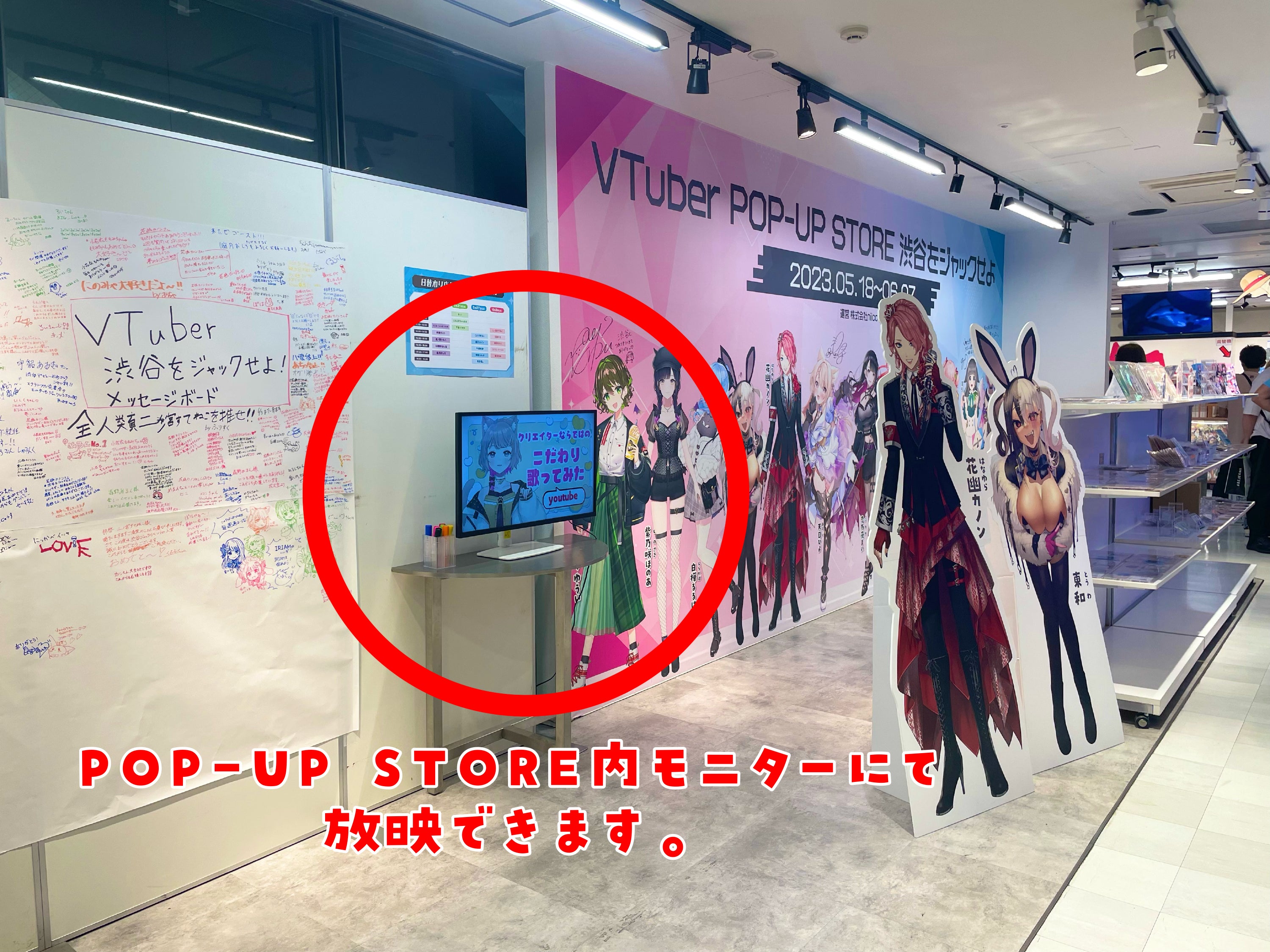 あなたの推しのVTuberをスクランブル交差点前のサイネージに掲載出来たり、POP-UP STORE内に広告映像を放映出来るプランもございます!