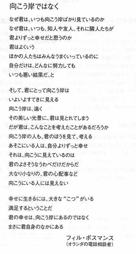 フィル・ボスマンスの詩は「新潟いのちの電話」の便り『聴く』に連載したものです。