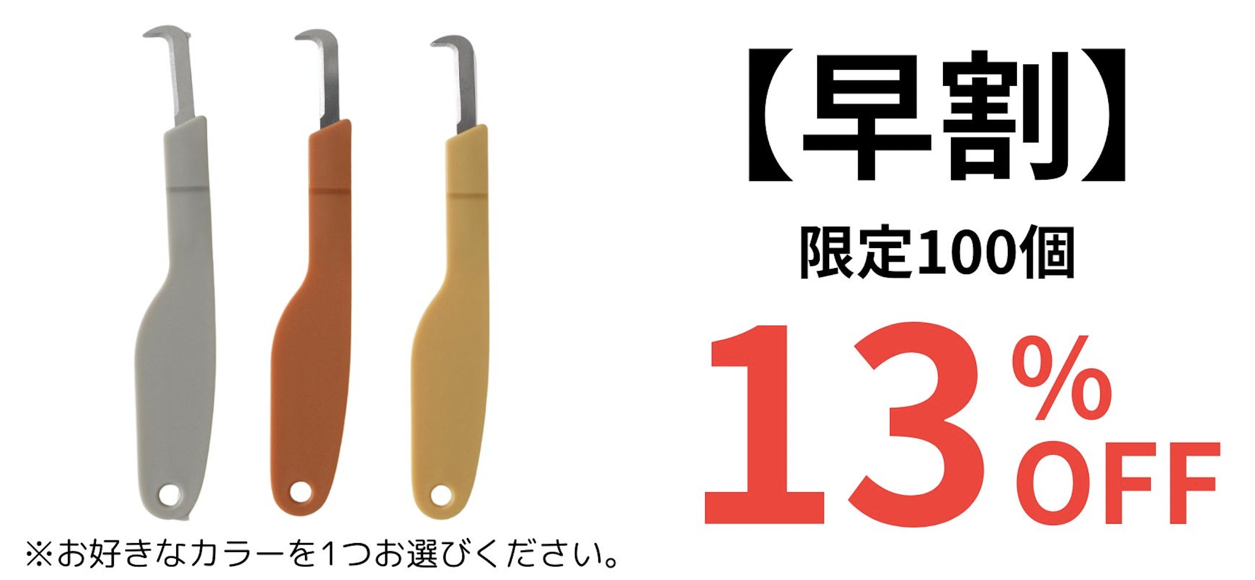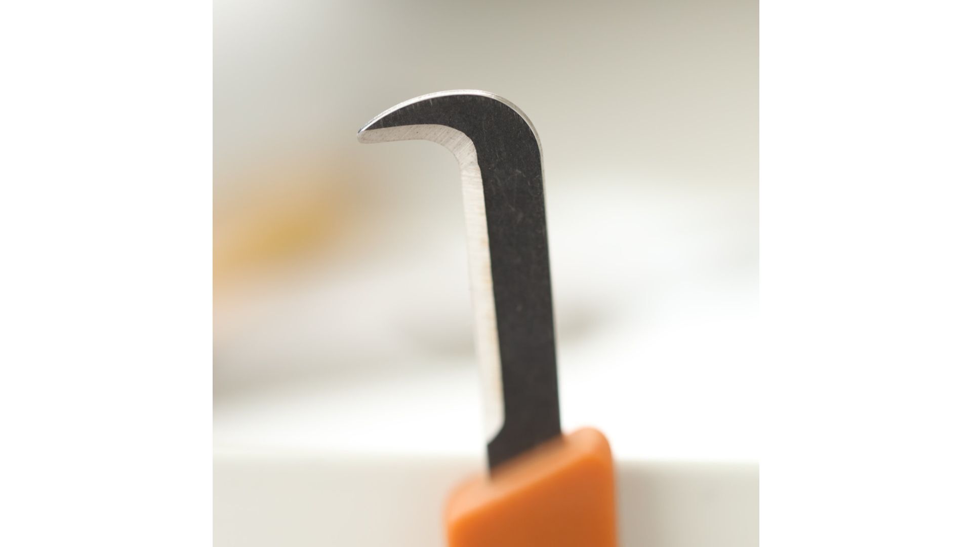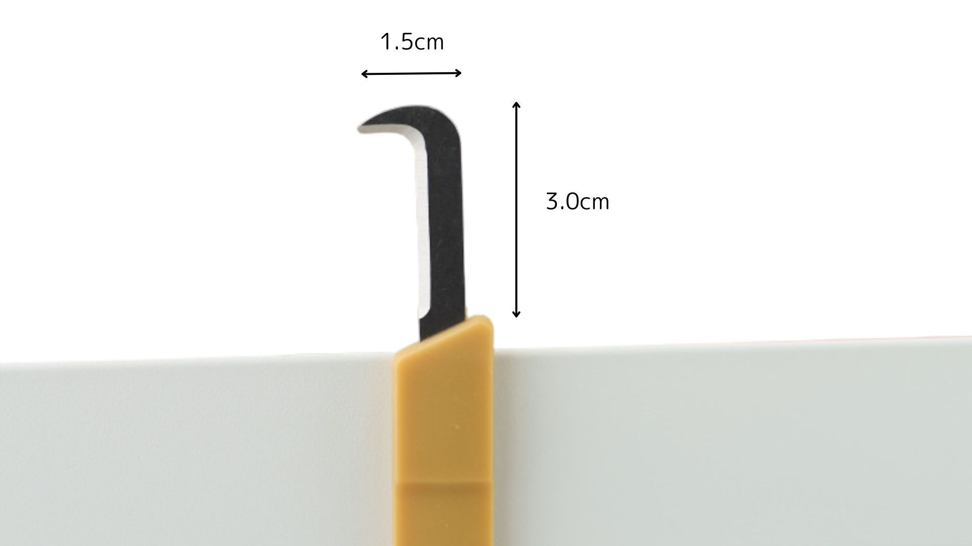 刃先は安全性を考慮して丸形状(R形状)にしております。フックタイプにある引っ掛かり事故を防ぎます。