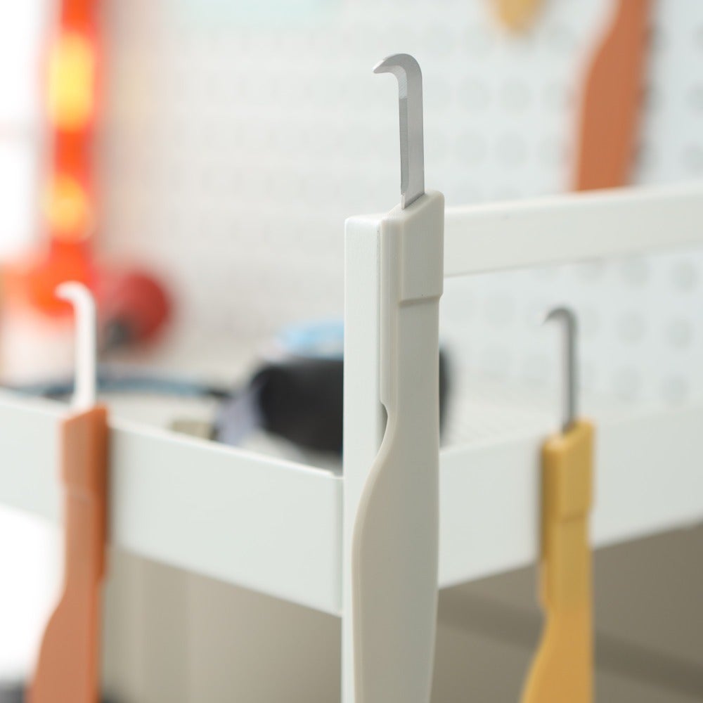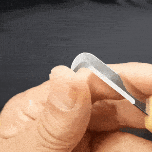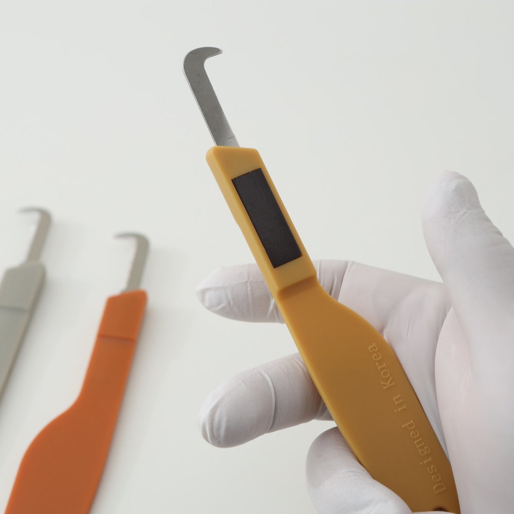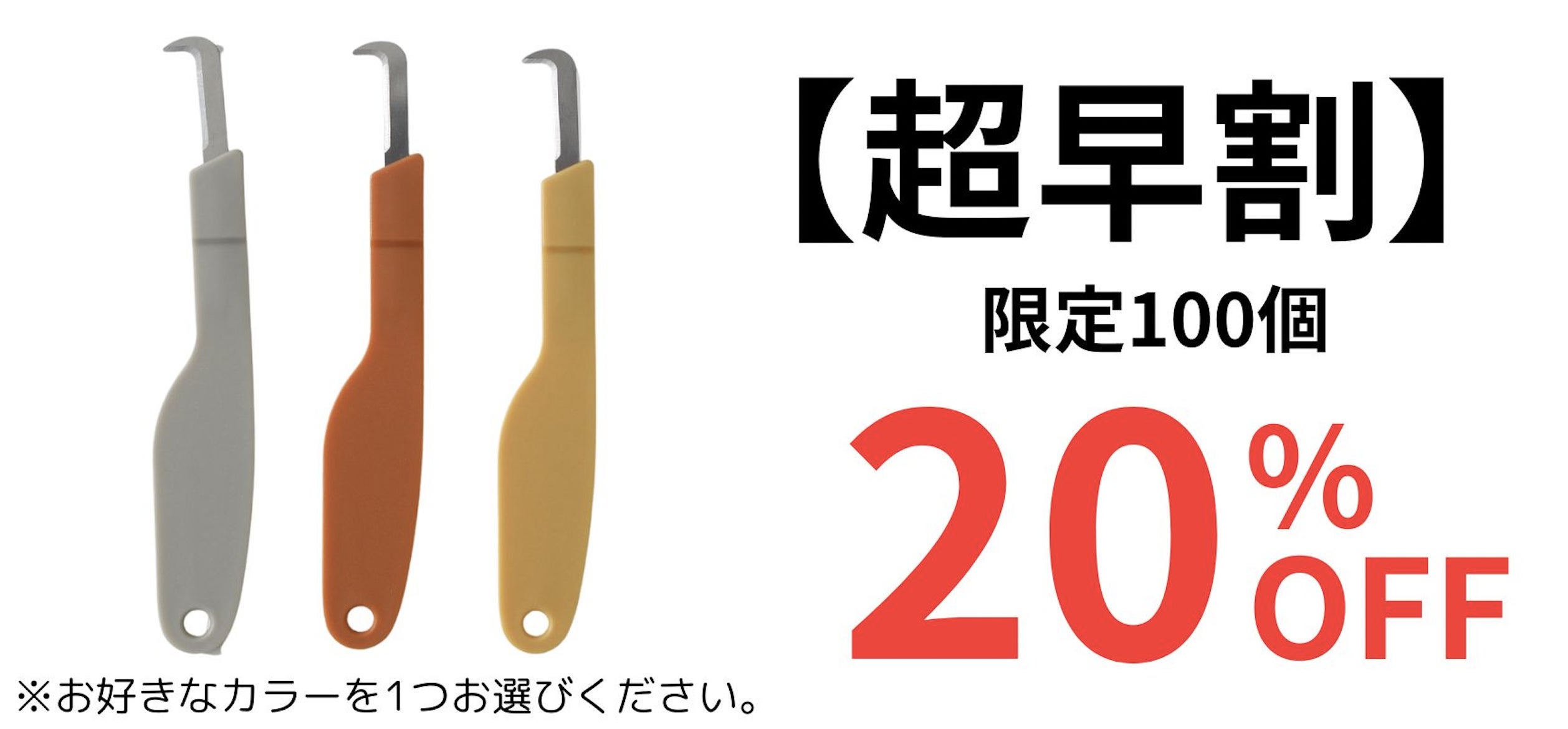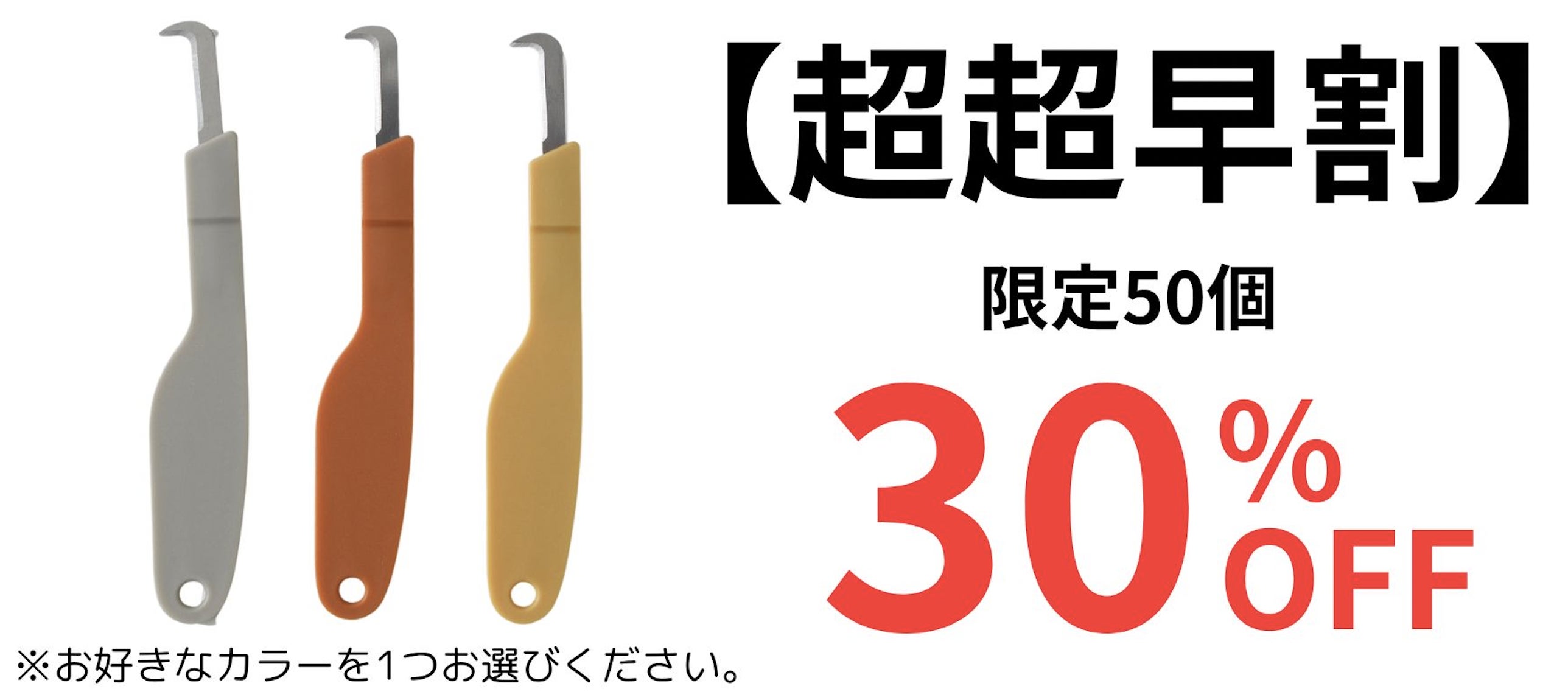 刃先は安全性を考慮して丸形状(R形状)にしております。フックタイプにある引っ掛かり事故を防ぎます。