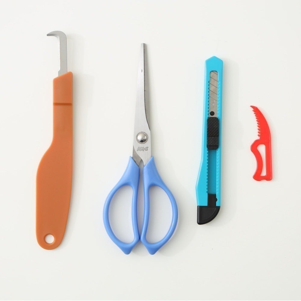 ひも・ロープ・PPバンドなどの切断作業もラクラク!!引っ掛けて切るので、下地や荷物を傷つけません。