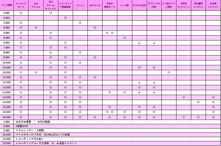 私たちの夢を応援してくださる皆さまには、様々なリターンをご用意しています。サイン入りCD、限定Tシャツ、バンドグッズ、レコーディング見学、ベース譜、イラスト付き直筆歌詞カード、プレス前音源の先行送付、ライブご招待など、私たちの感謝の気持ちを形にしてお返しします。
