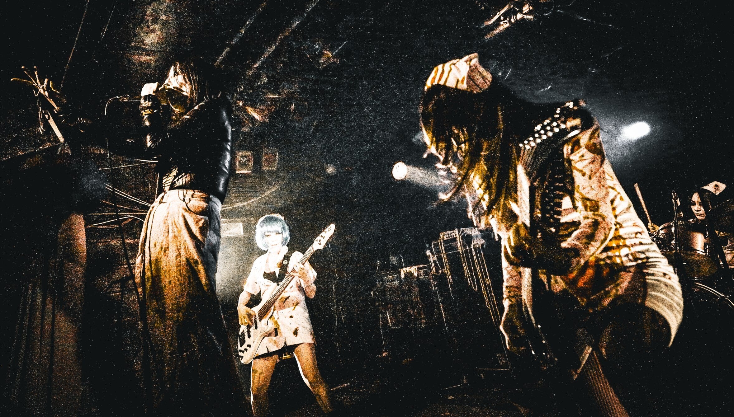 ACHILLESは、ヘヴィ・メタル、ハード・ロック、グランジ、ミクスチャー、ハードコアの影響を受け、流行りに迎合することなく、自分たちが本当に良いと思う音楽スタイルを追求しています。ツインペダルを駆使したダイナミックなリズム、5弦ベースのスラップ、7弦ギターの重厚なリフ、デスボイスを織り交ぜた迫力あるボーカル、エモーショナルかつ覚えやすいメロディ・・・これらがACHILLESの音楽の特徴です。加えて、ビジュアル面でも独特の世界観を表現しています。激しく鬼気迫るパフォーマンスとSilent Hillを意識した暗く幻怪なステージは、一度観たら忘れられないものになるでしょう。ACHILLESが織りなすサウンドとビジュアルの融合は、オーディエンスの五感に訴え、魂に揺さぶりをかけます。
