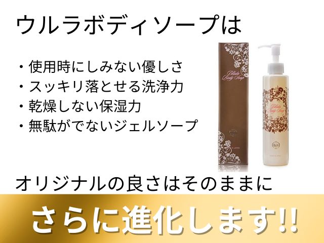 口コミで徐々に広がった商品は、私が50才になり、緊計30万個以上(2022年5月自社調べ)を販売するまでになりました。そのウルラボディソープを更に、パワーアップすべくリニューアルいたしました。