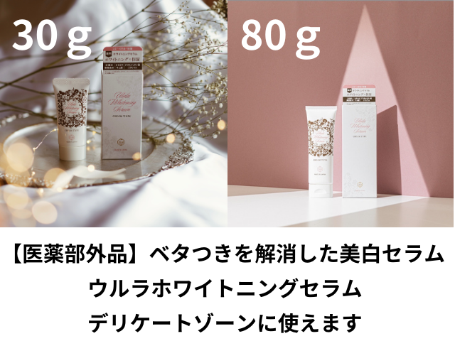 デリケートゾーンにも使用できる医薬部外品の薬用美白セラムです。クリーム特有の使用後のベタつき感を解消しました。