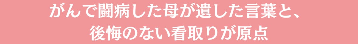 苦痛や不安を少しでも楽にしてあげたいと思いながらも、「闘病する母と向き合うのがつらく、泣いてばかり。逃げてしまっている自分が嫌になる」「残された時間はあとわずか。父の痛みや苦しみをどうにか和らげてあげたいのに、何もできない自分が悔しい」。そんな苦しい思いを抱えて看病されている皆様の力になりたい。