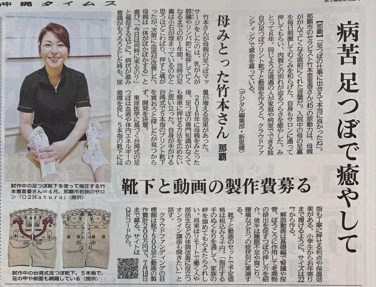がん闘病の母を癒やした足つぼ「誰もが簡単にできるように」 みとったセラピスト、靴下と動画の製作資金を募る