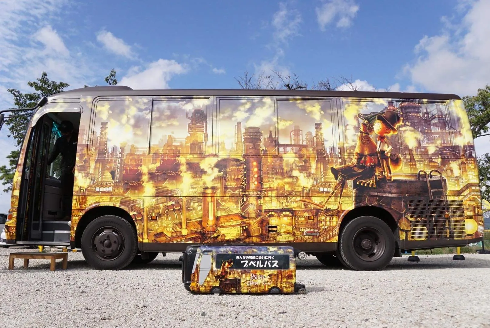 日本全国だけでなく、世界中で開催されている『えんとつ町のプペル光る絵本展』なんですが、バスの中を個展会場に改造した移動式個展会場はこのプペルバスが初めてで日本に1台しかあません。