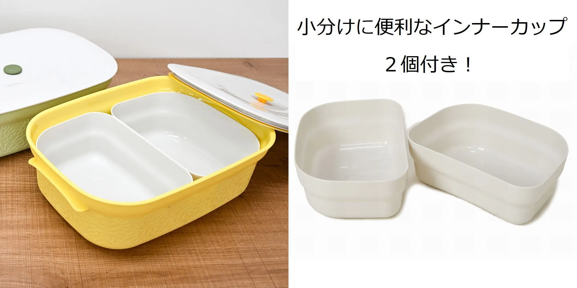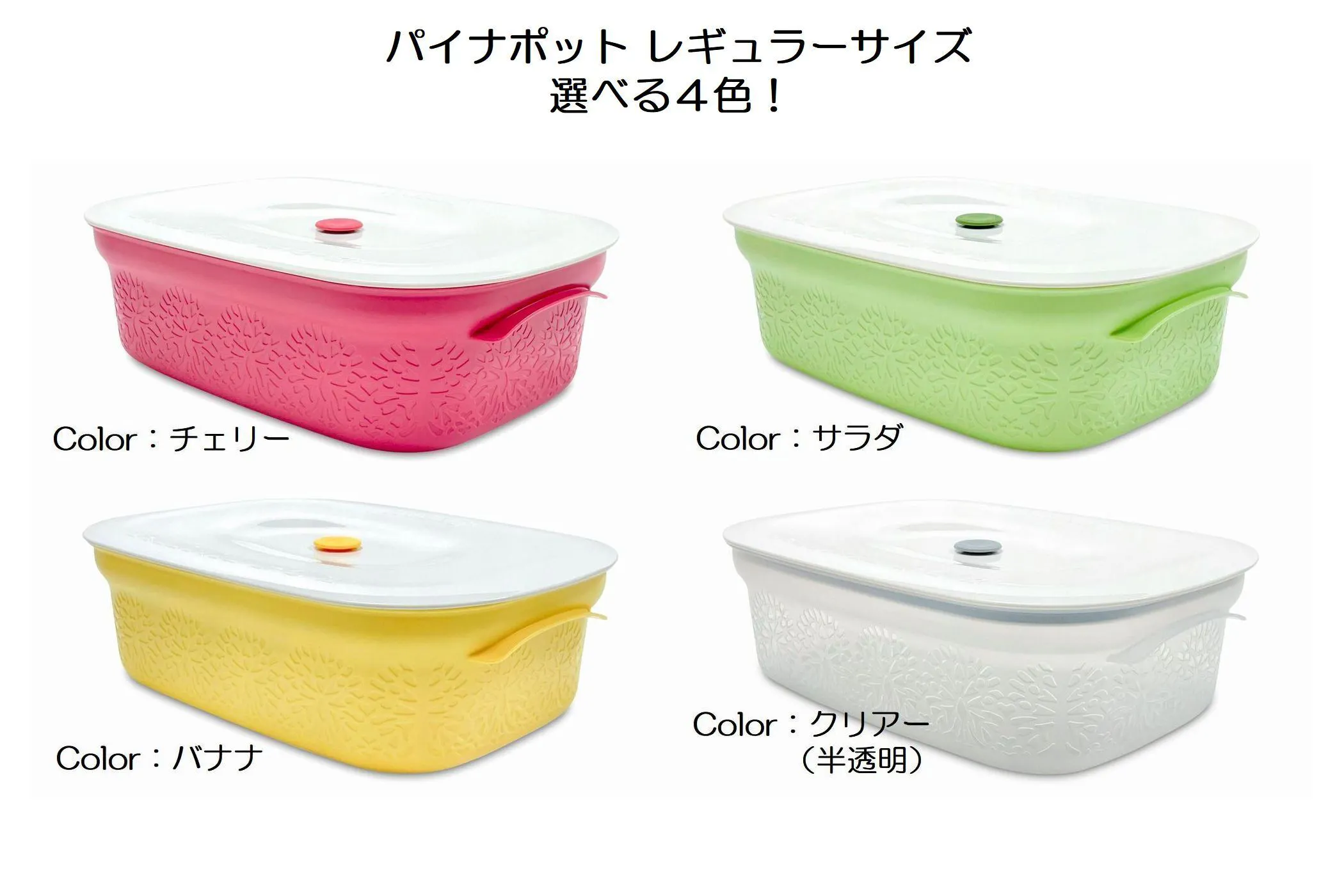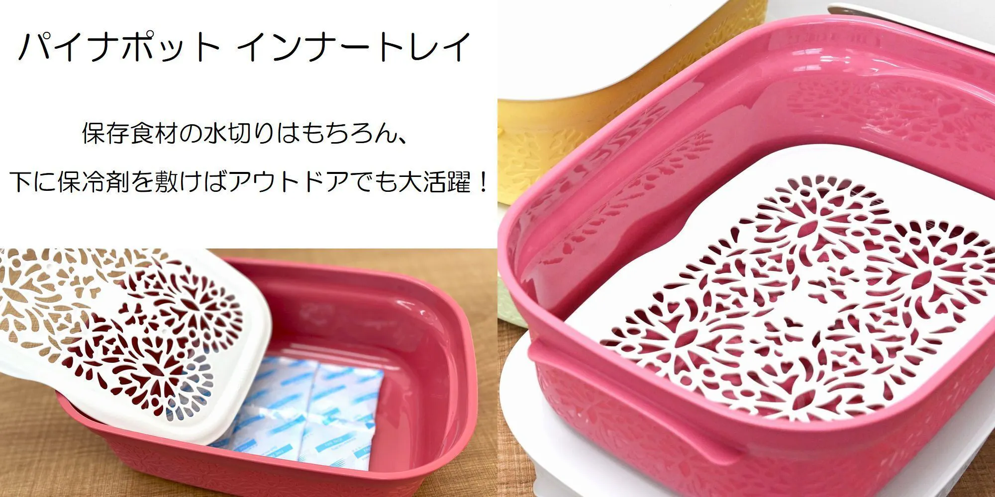また大容量のレギュラーサイズには水切りができる専用インナートレイと、パイナポットでレンジ調理が楽しめるレンジ調理レシピをお付けしています。