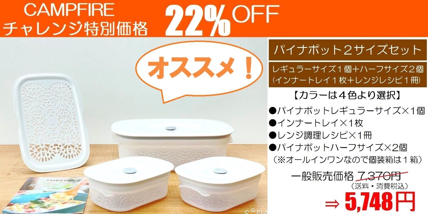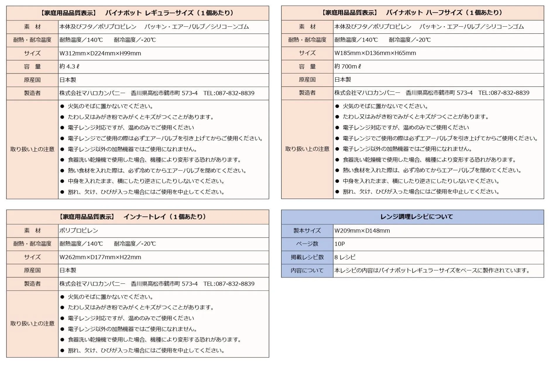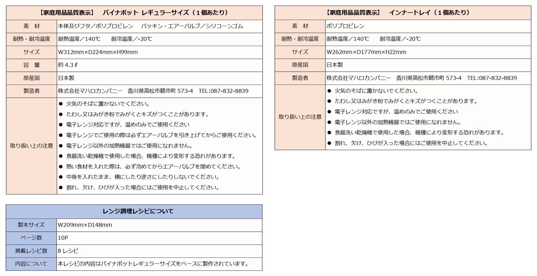 また大容量のレギュラーサイズには水切りができる専用インナートレイと、パイナポットでレンジ調理が楽しめるレンジ調理レシピをお付けしています。