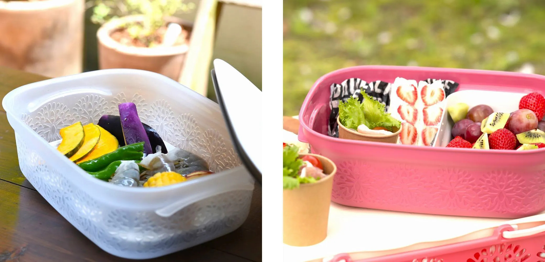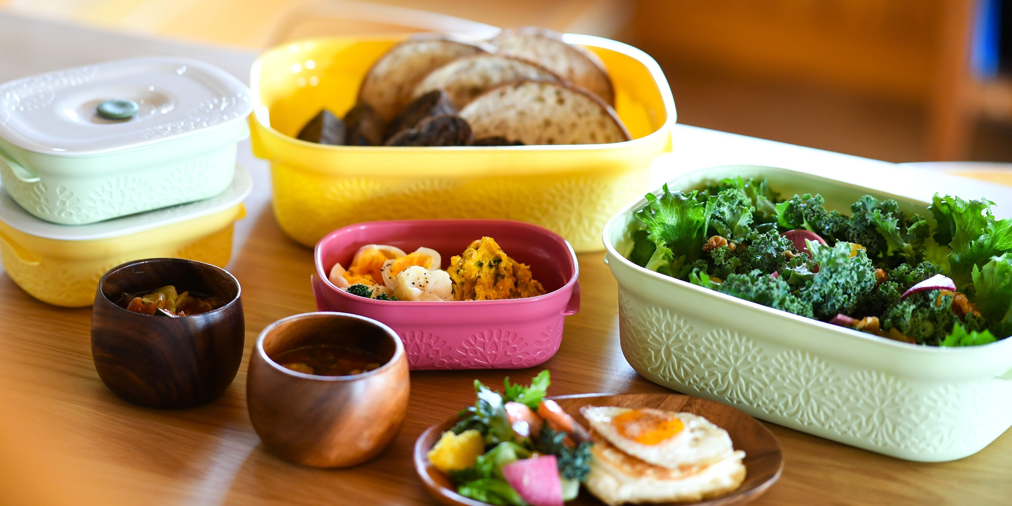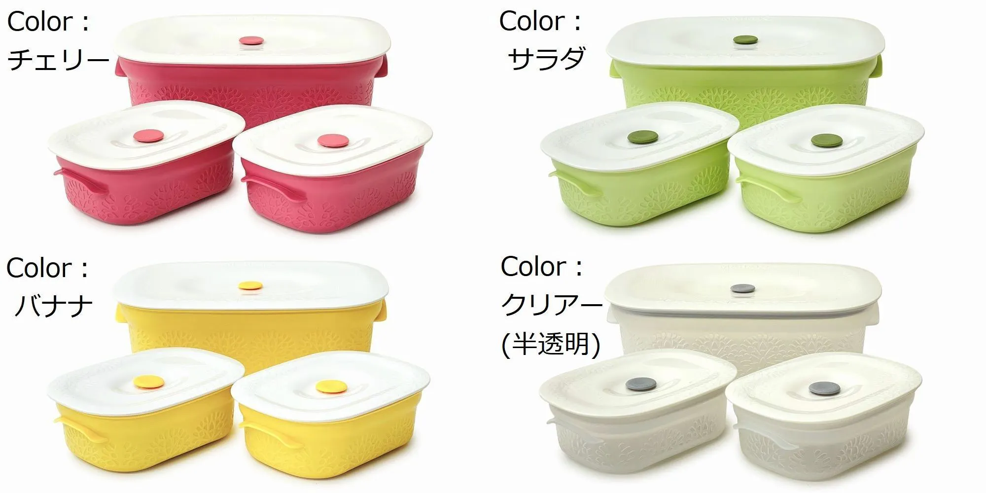 今までになかった、食卓を華やかに演出できる日本製の食品密閉保存容器です。