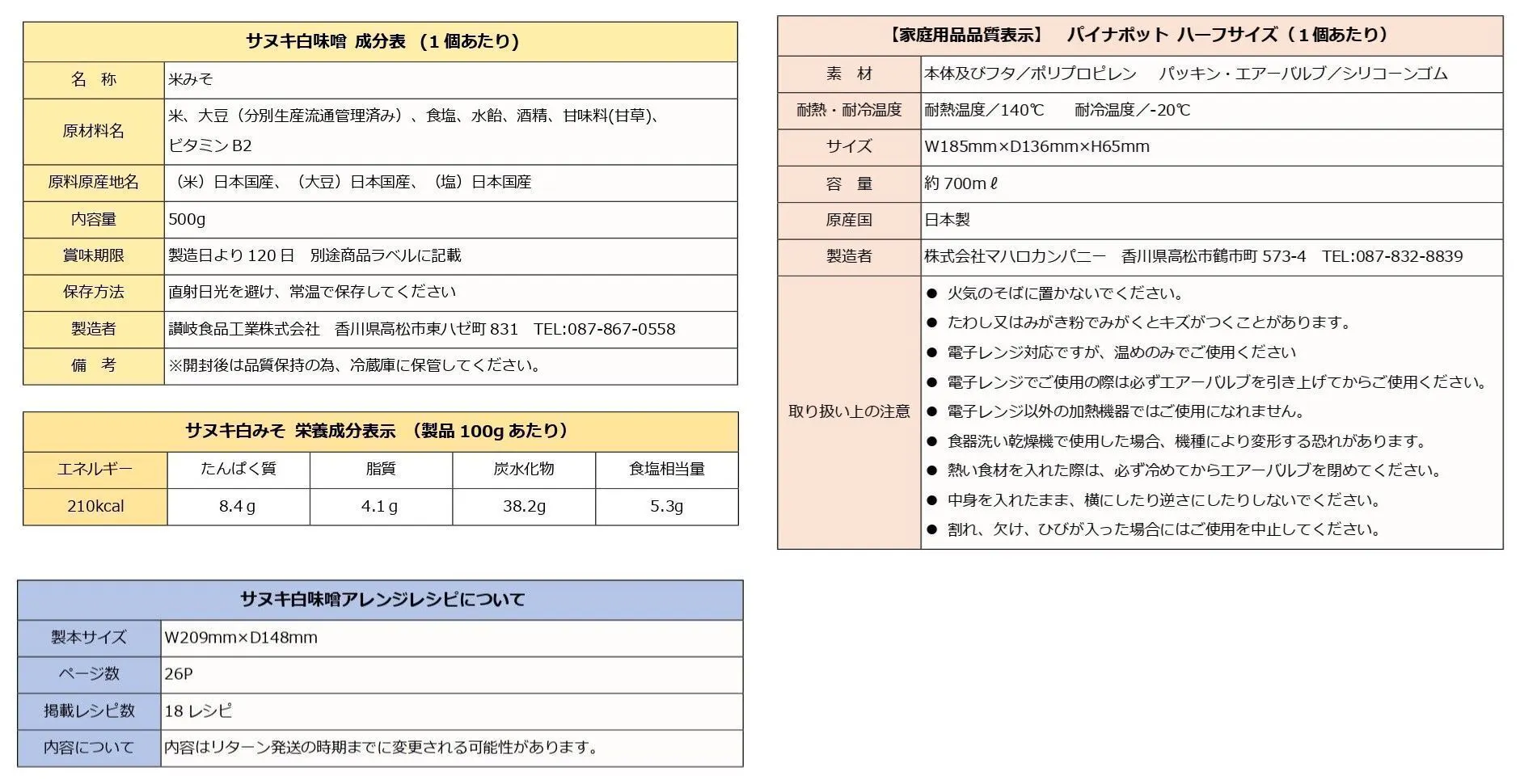 当社が「食材保存をもっと楽しく!」とのコンセプトのもと開発した密閉保存容器パイナポットに香川県伝統のサヌキ白味噌、そしてそのサヌキ白味噌の美味しさを存分にお伝えするためのオリジナルレシピブックとをセットした新商品【サヌキ玉手箱】を開発することとなりました。