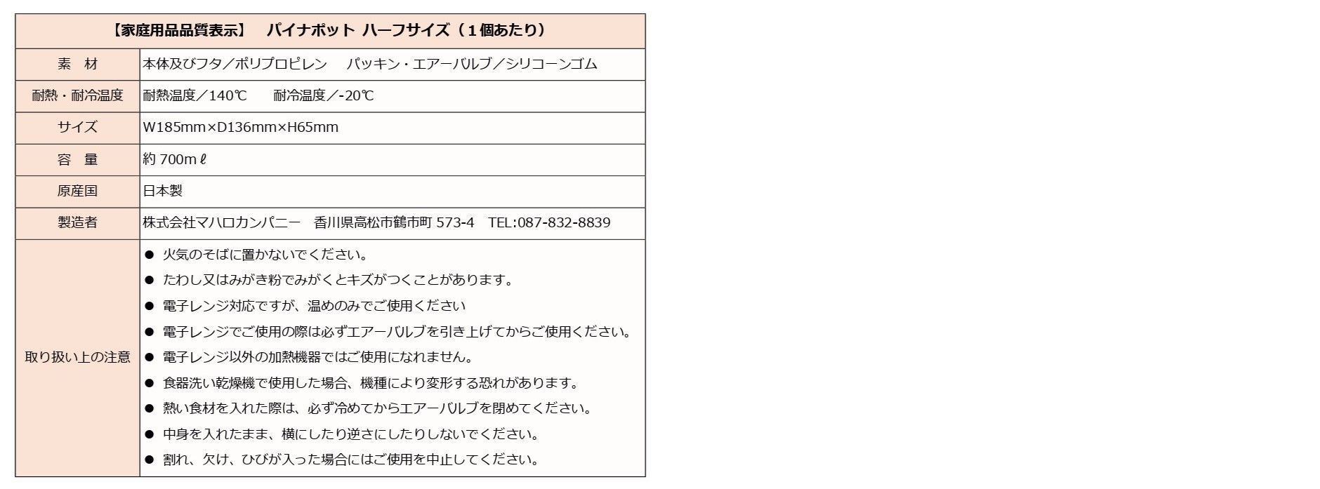 ハーフサイズは容量700mℓなのでランチボックスとしてもオシャレにお使いいただけるサイズです!
