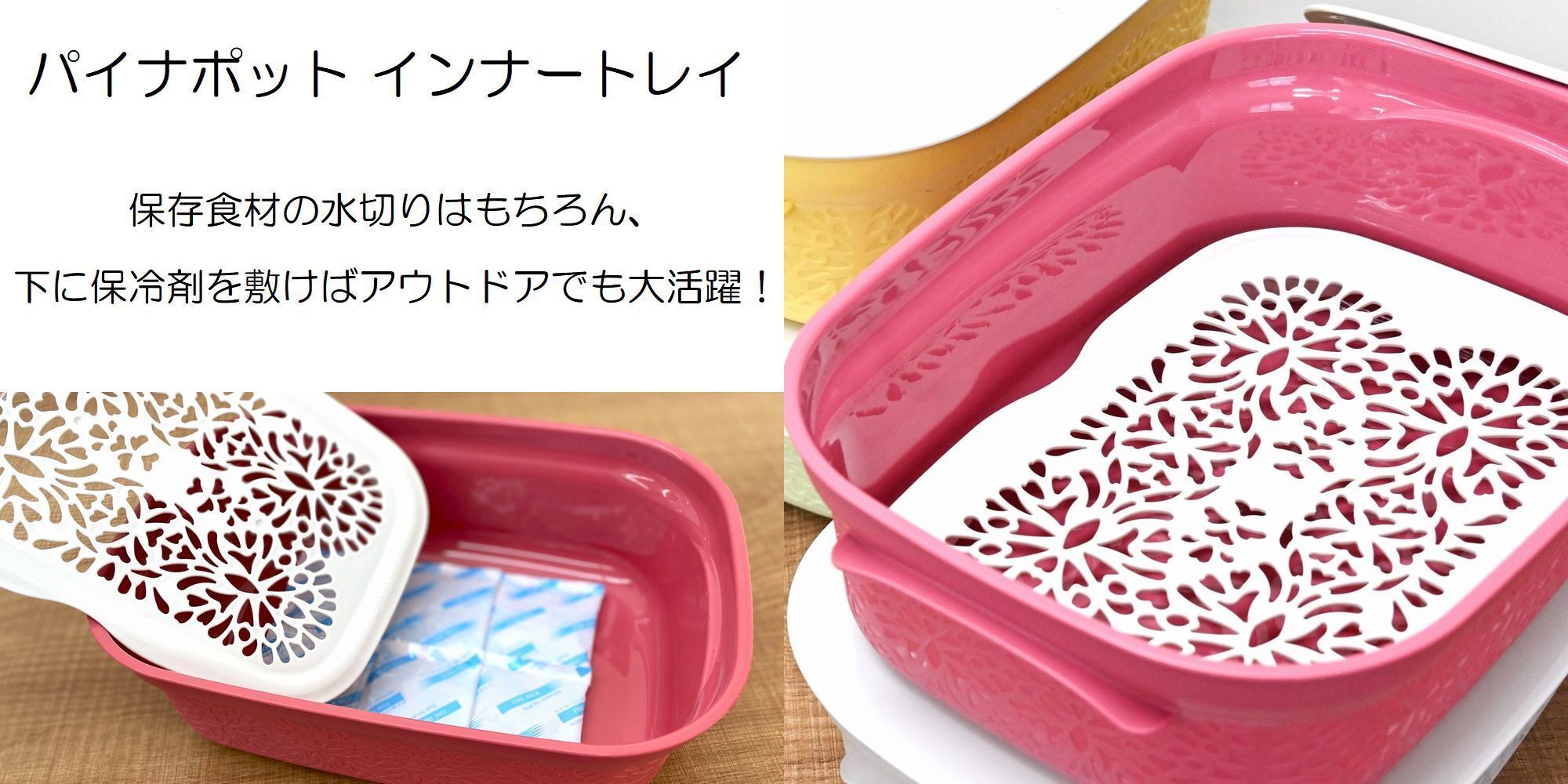 大容量のレギュラーサイズには水切りができる便利な専用インナートレイと、パイナポットでレンジ調理が楽しめるレンジ調理レシピをそれぞれお付けしています。