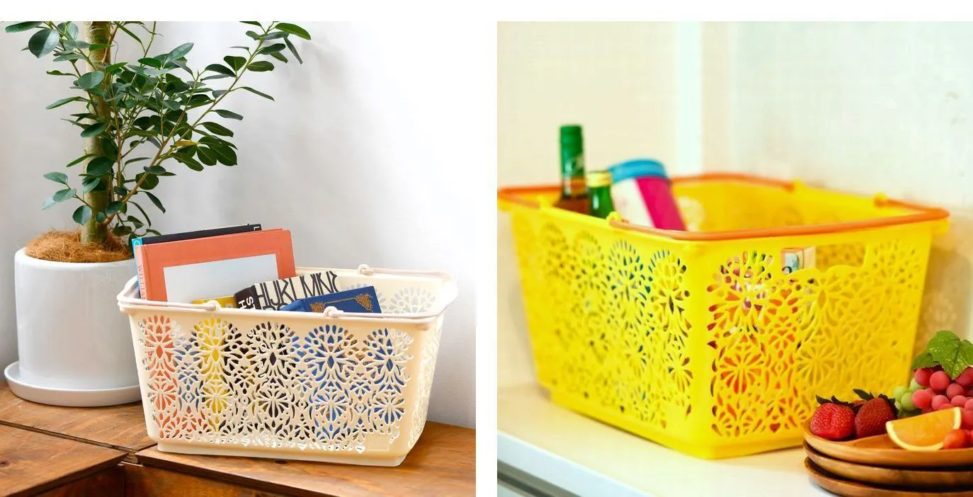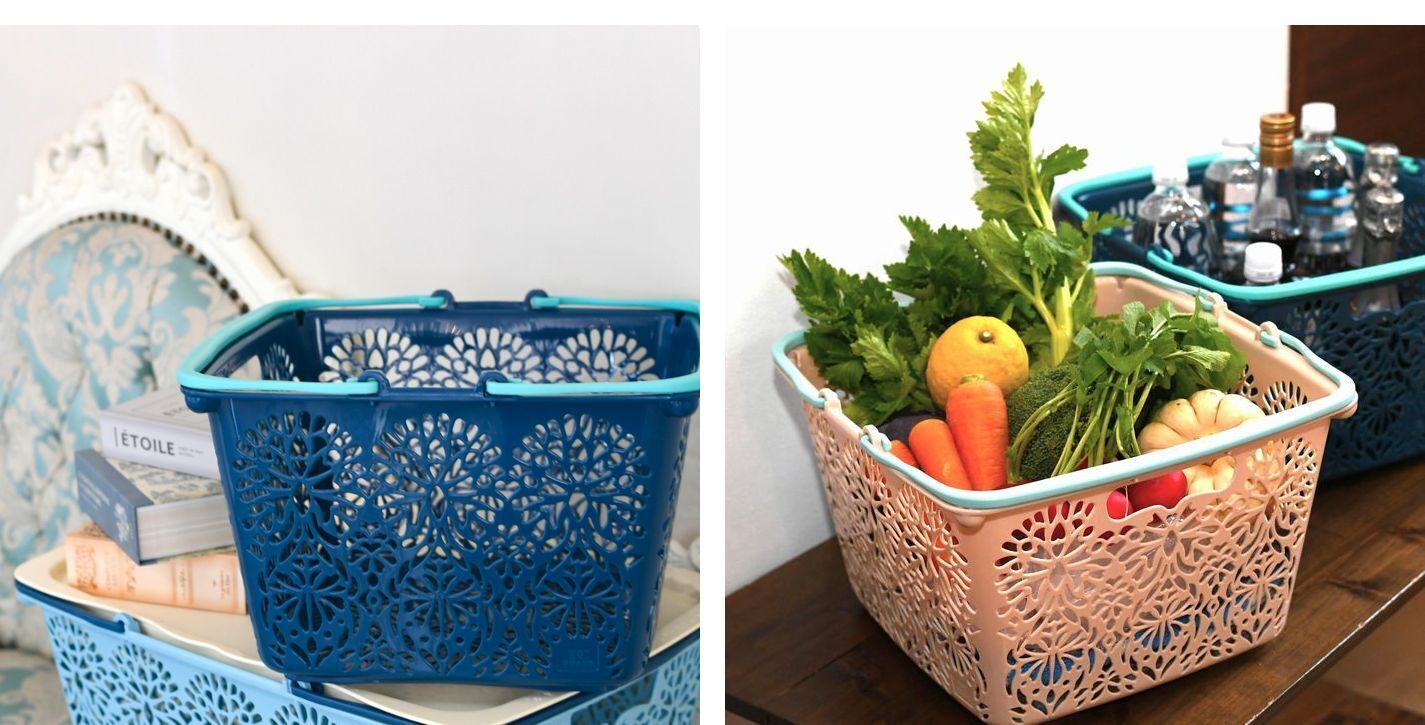 南国の花をモチーフにしたレース模様をあしらったデザインはマイ・レジカゴとしてエコなお買物にはもちろん、屋内ではカラフルなインテリア収納としてもお部屋を華やかに彩ります!