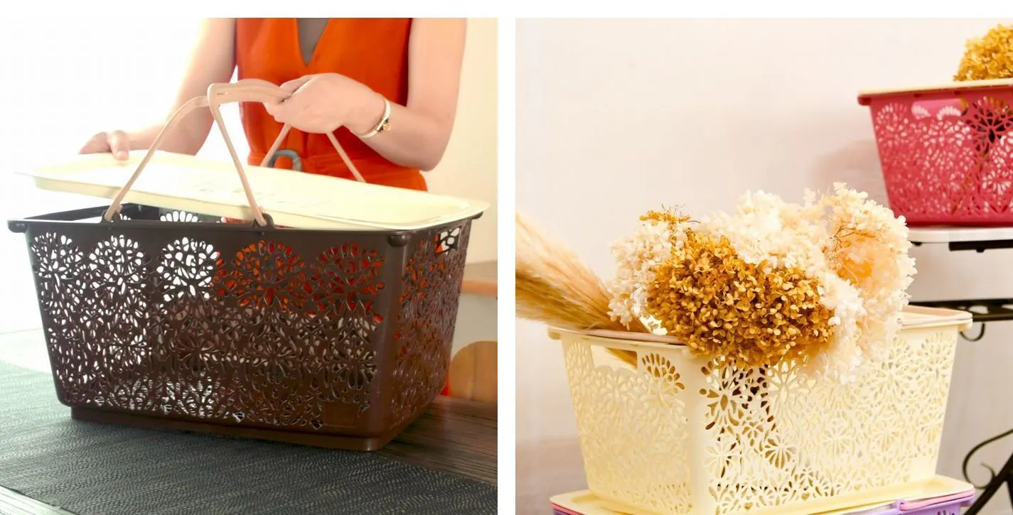 専用の蓋(マハロパレット)を組み合わせるとミニテーブルとしても使えるマハロバスケットはガーデニングや行楽、またアウトドア用品としてな、ど様々なライフシーンで多用途に大活躍する日本製のバスケットです♪