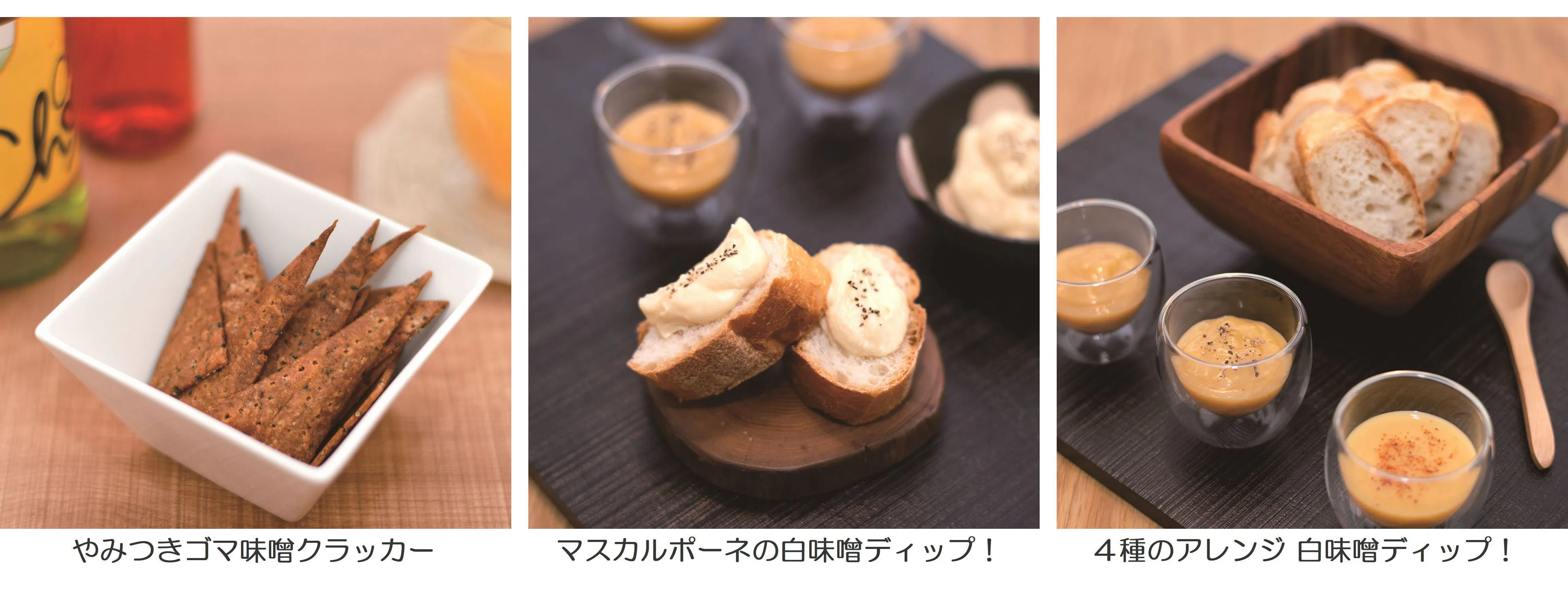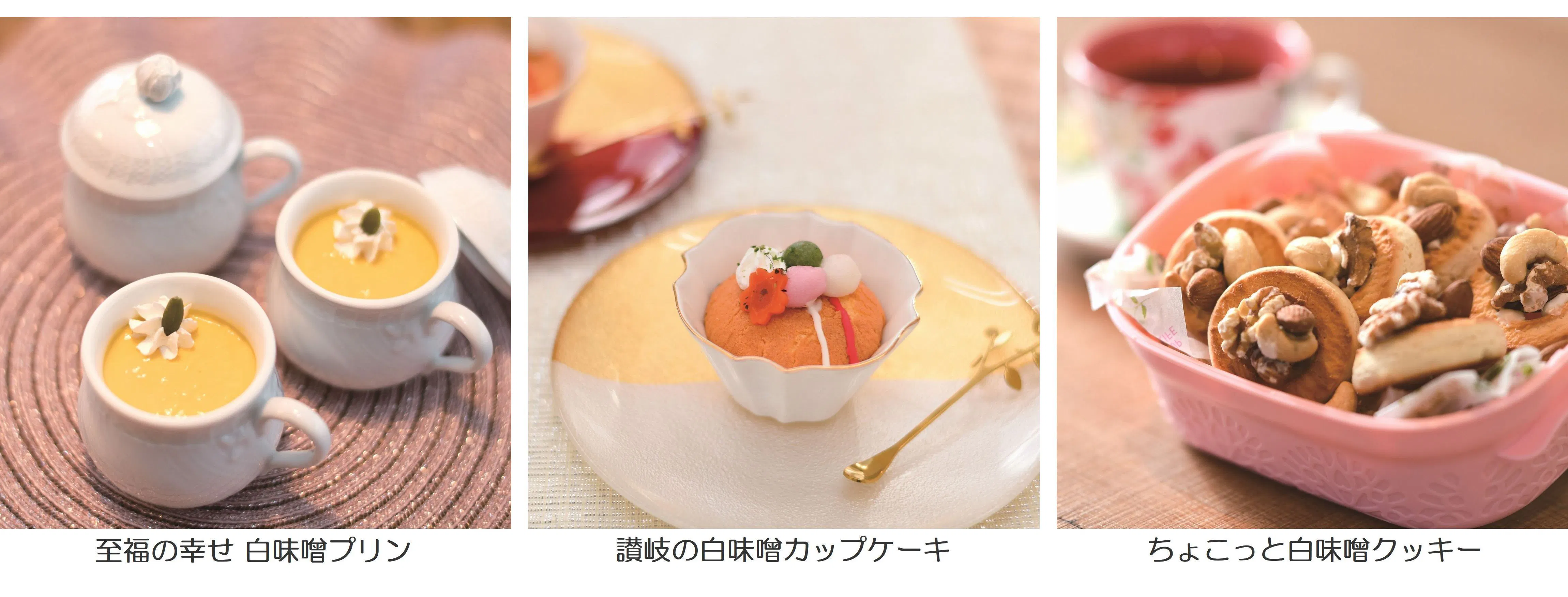 その特徴を存分に生かすために一般的な味噌料理はもちろん、サヌキ白味噌を使ったスイーツやオリジナル・ディップなど、様々なレシピを用意して皆様に「サヌキ白味噌のおいしさ」と共に「作る楽しさ」をお届けします!