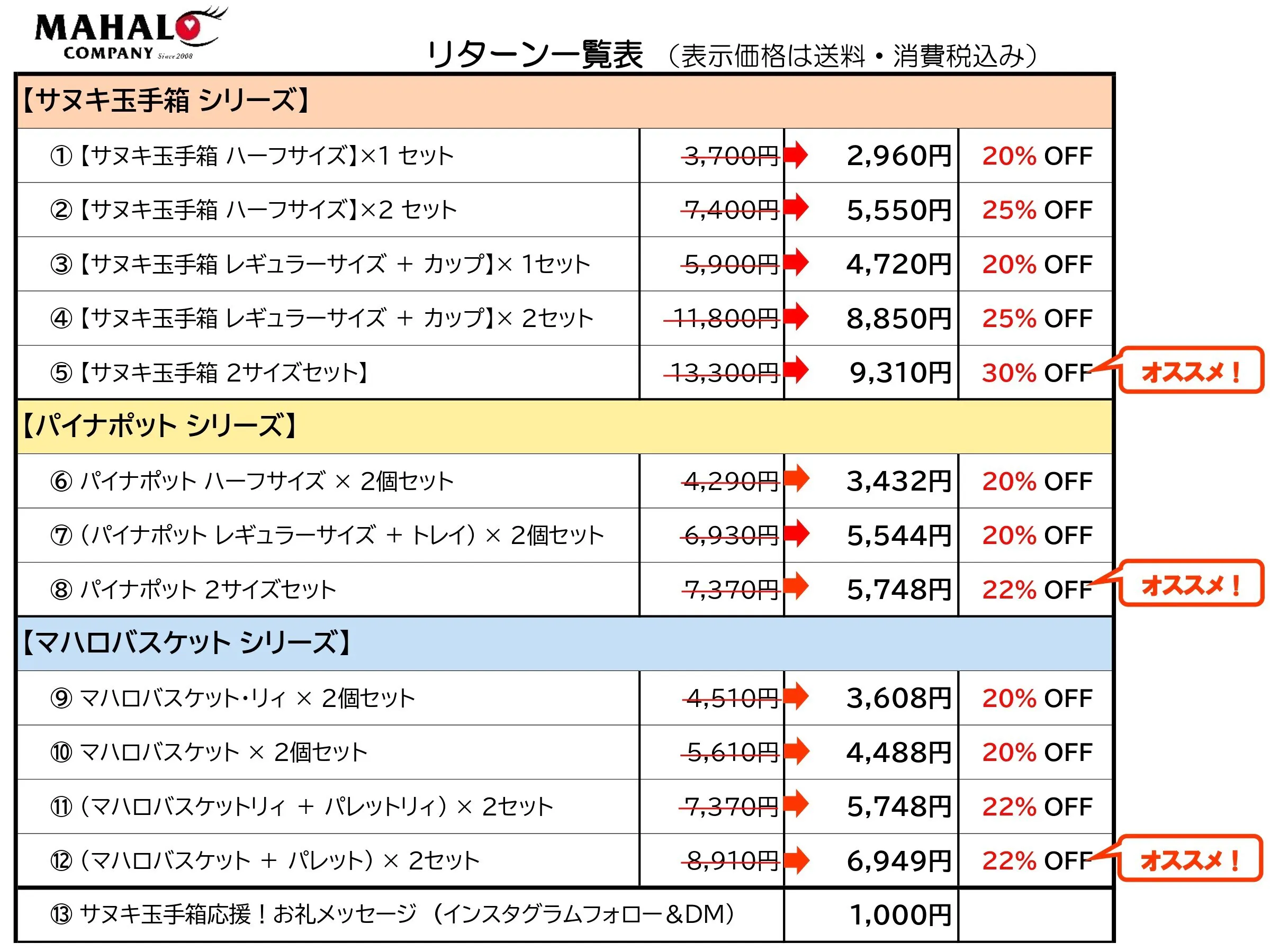 サヌキ玉手箱 レギュラーサイズ1個とサヌキ玉手箱ハーフサイズ2個をセットにした大変お得なリターンです。
