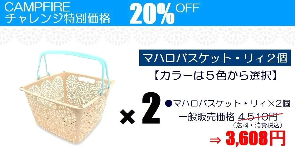 多用途に使えるマハロバスケット・リィをもっと便利に使える、クラウドファンディングだけの大変お得なセットです!