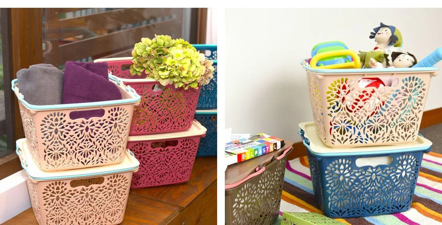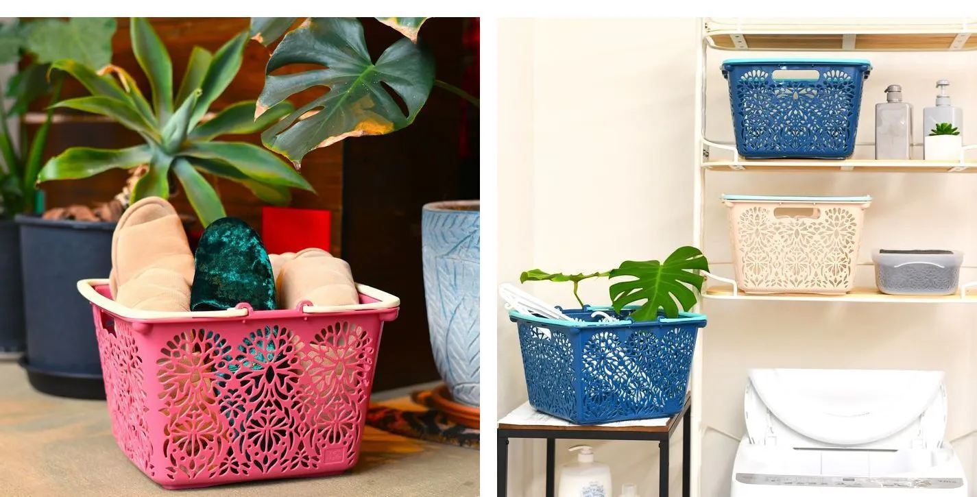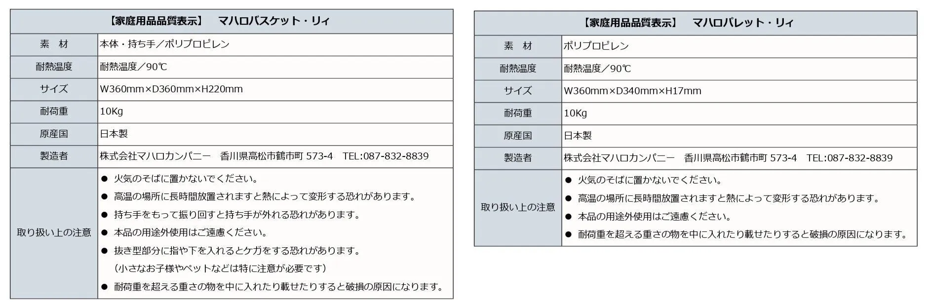 スクエアタイプで使いやすいマハロバスケット・リィ、カラーが選べるお得な2個セットです。