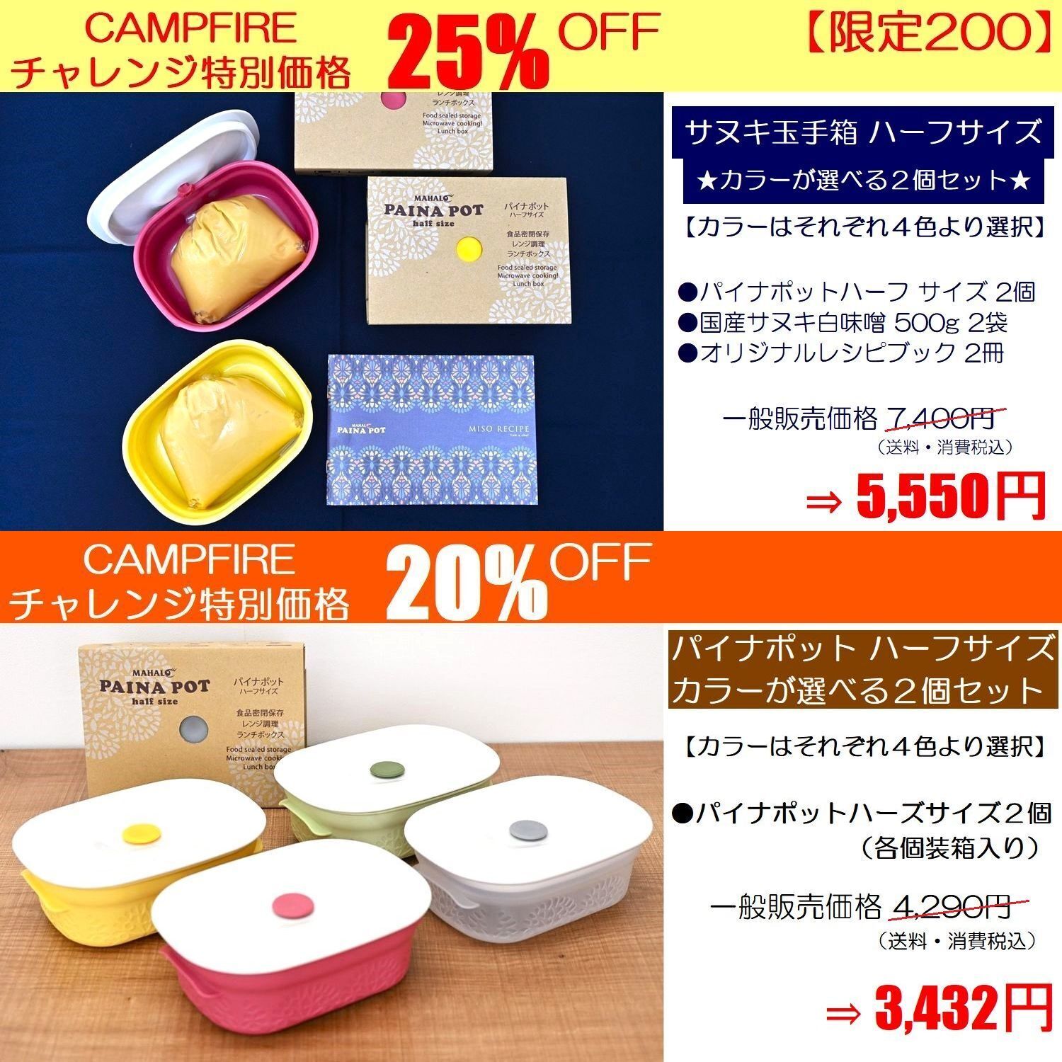 2024/03/11 21:17残りあと20日!引き続き応援宜しくお願い致します。「サヌキ玉手箱プロジェクト」が現在目標金額の89%を達成いたしました!これまでの皆様からの温かいご支援に感謝申し上げます。そしてご支援いただけた方からの嬉しいメッセージに大変勇気をいただけましたので、ここで支援者様からのメッセージの一部をご紹介させていただきたいと思います!~以下ご支援者様からの応援メッセージ(一部抜粋)~●応援しています! サヌキ玉手箱の到着が楽しみです。●2色選べるの最高です!! レシピブックで料理の幅も広がりますね♪●マハロバスケットの大ファンです! めーっちゃ応援してます!●大好きなマハロさん、応援しています! 頑張ってください!●パイナポットのデザインが可愛くて気に入っています。●応援しています!ぜひ頑張ってください! バスケットは何年も愛用してます!!●楽しみに待ってます~●応援しています!!MARIE●応援しています! マハロがんばれ!●リターンを選んでいる時もワクワクでした 応援させていただきました ●大好きなマハロさん!出会った時からずっと愛用させていただいております。 二川社長の想いやお人柄が本当は素敵でこれからもずっと応援しています! いつも生活に幸せをありがとうございます。●いつもマハロカンパニーさんのインスタみてますよ! 応援しています! 頑張ってくださいね!●お味噌も興味があり、パイナポットにも関心があり参加しました。 応援しています。●応援しています!頑張ってください!お味噌が楽しみ。ピンクの容器大切にします。 以上、いただいたメッセージ全ては掲載できませんでしたが全てのメッセージが励みになっております!!皆様温かいご支援、そして心温まるメッセージ本当に有難うございました!プロジェクトも残すところあと20日!のこり11%でのプロジェクト成功を目指して今後も精一杯頑張ってまいりますので、みなさま今一度プロジェクトの応援、そして告知やPRへのご協力を宜しくお願い申し上げます。 もっと見る