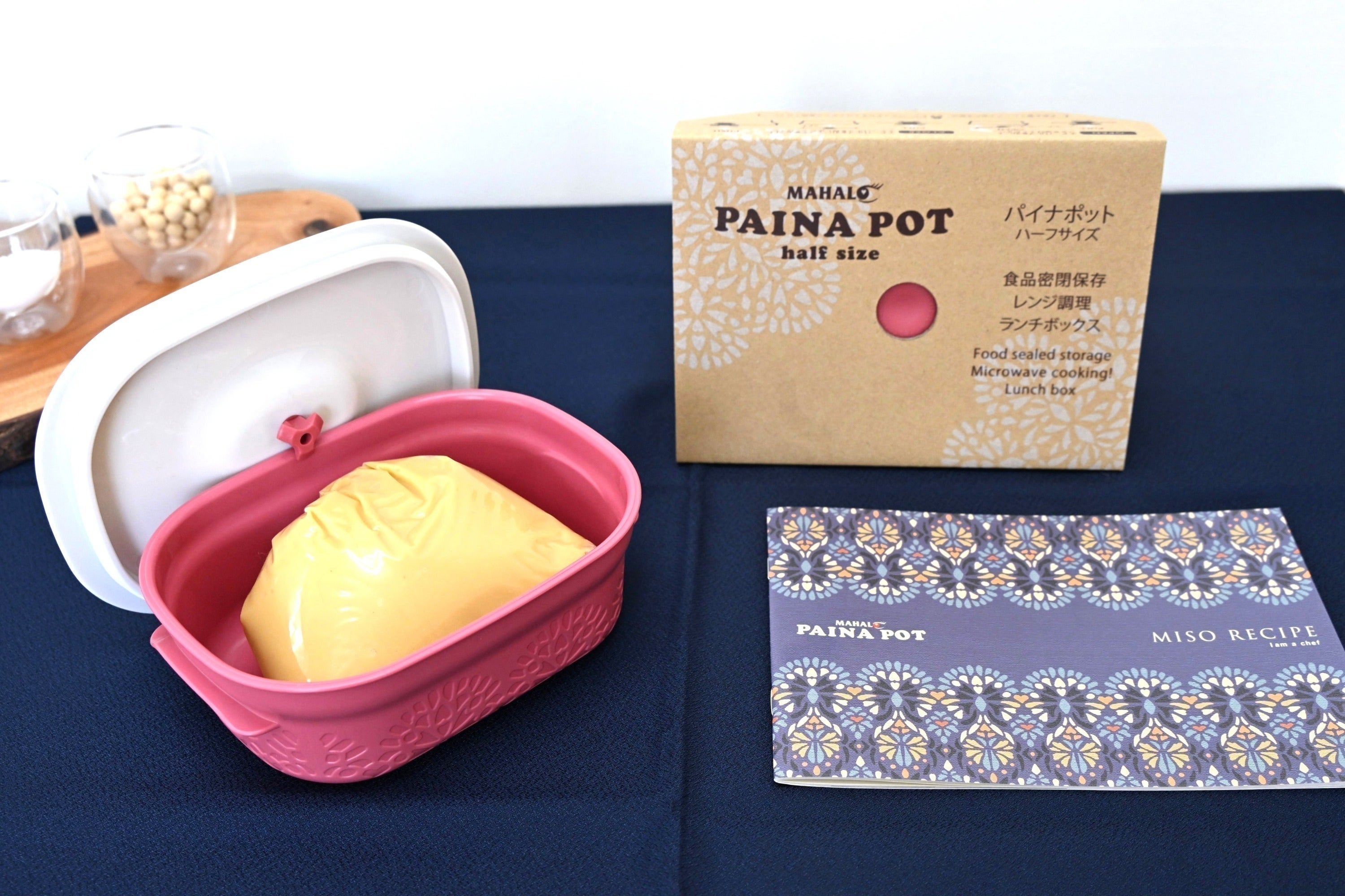 またサヌキ白味噌は塩分量が少ないため酸化による変色や風味も失われやすい食材なので、「白味噌は密閉容器で保存すると美味しさが長持ちするんですよ!」という味噌製造会社さんの言葉がヒントになり、その瞬間「パイナポットを沢山の方々に使っていただきたい!」という当社の想いと味噌製造会社という全く異なる業種2社の想いとが1つに重なりました!
