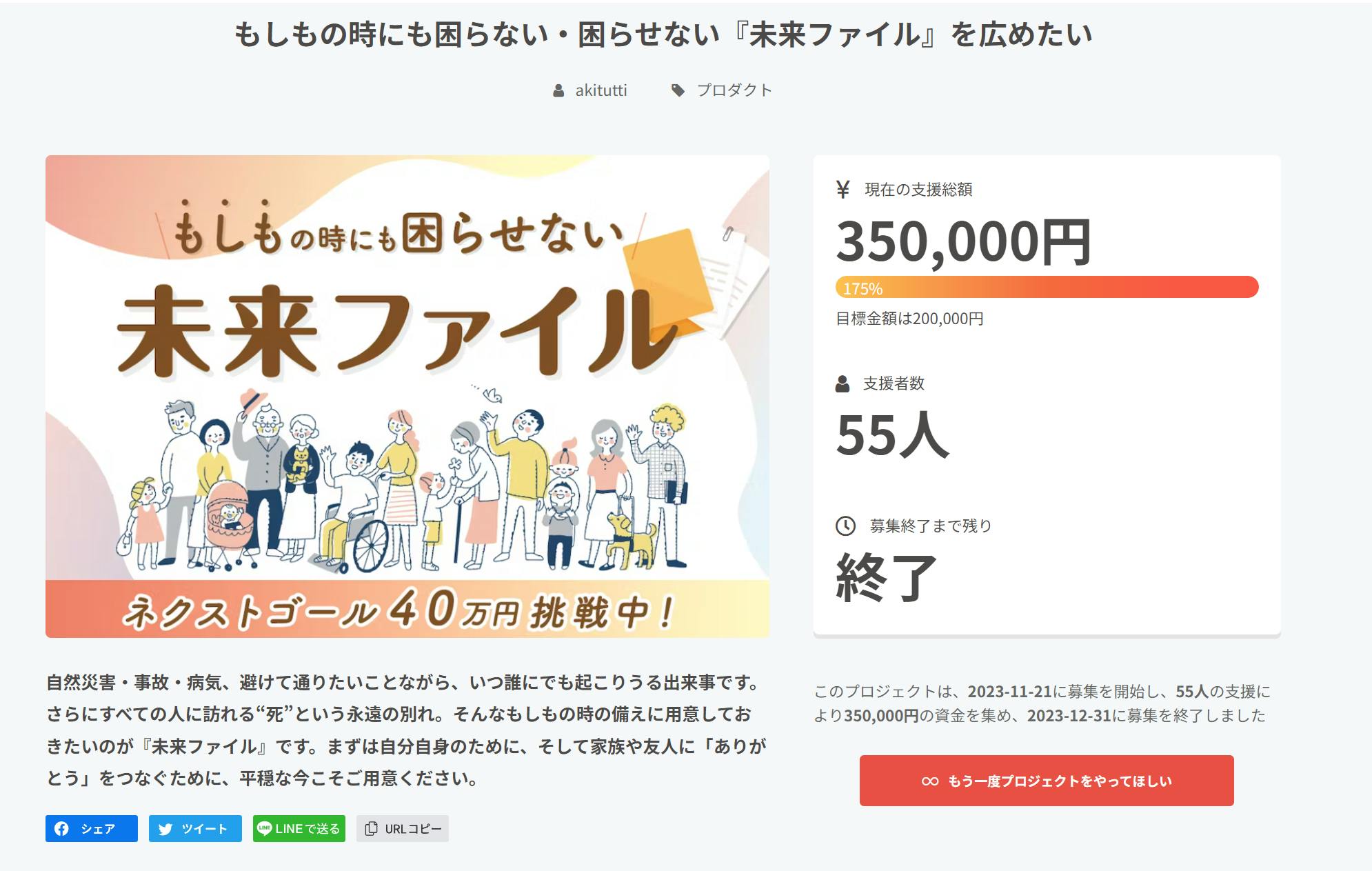 昨年11月よりスタートした未来ファイルのクラウドファンディングが無事終了いたしました。