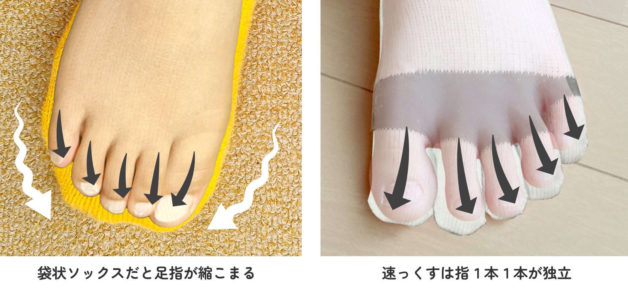 ③ 速っくすを履き続けることで、ゆび1本1本へ圧力を軽減できる
