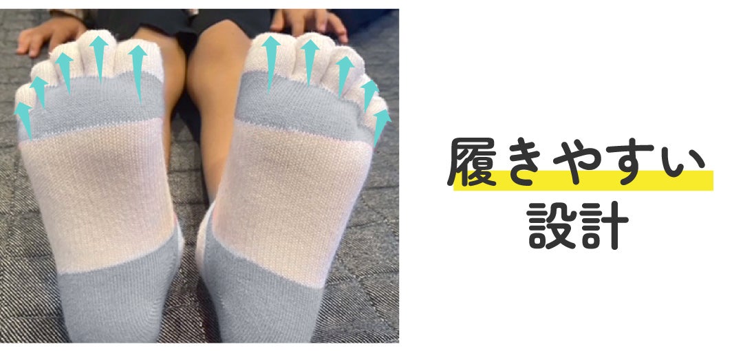 5本指靴下初心者でも大丈夫。特殊な編み込みで1本1本の指が入りやすく運動効率がアップします。