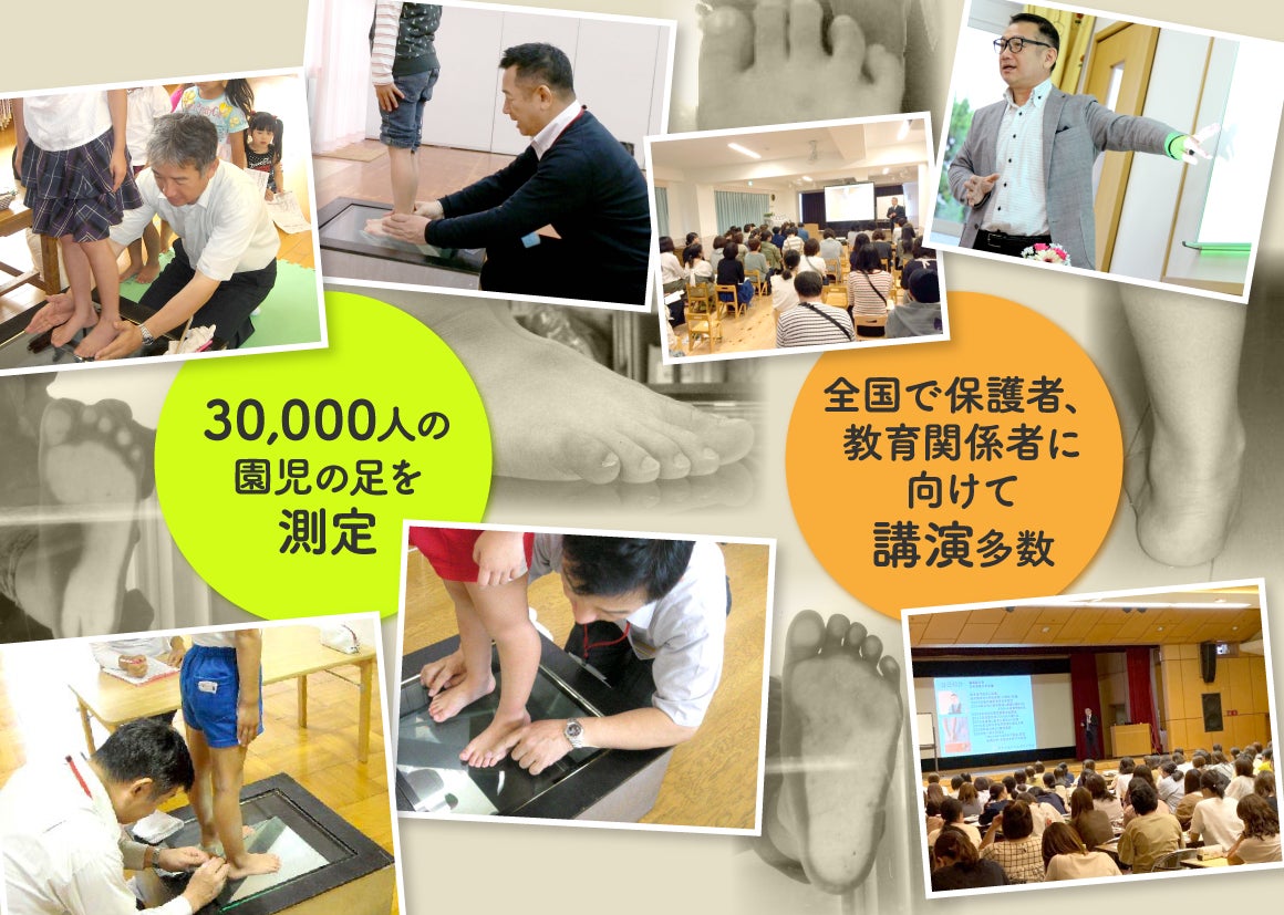 一般社団法人チャイルドヘルスケア協会では、幼児を中心とした子どもの成長観察事業として「足」を中心に測定を行い、測定以後 現在までに約3万人以上に達しています。