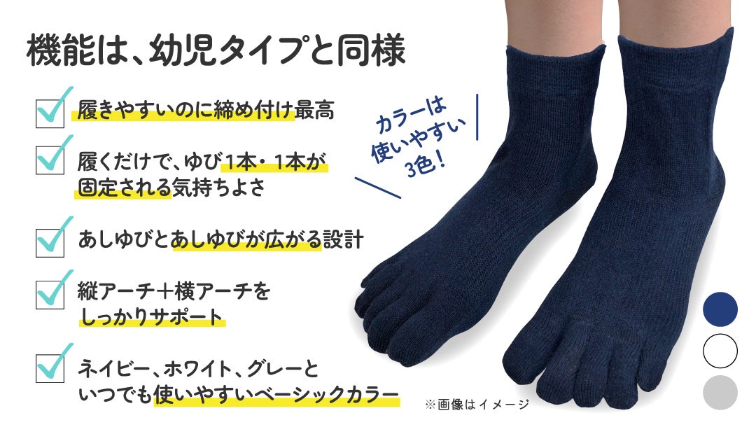 あしゆびの変形は、年齢が上がれば上がるほど進行する傾向にあるので、あしゆびを健康に育成するソックスは、待ち望まれていたものです。