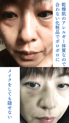 しかし、お客様にスキンケアの際に、どんな化粧品を勧めたら良いかとても悩み、知人の進めるネットワーク商品や、色々なものを使ってみましたが、私はアレルギー体質もあり、それらのものは合わず肌もボロボロになりました。