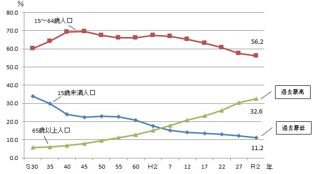富山県は現在全国で37番目の人口を抱えており、平成7年以降は減少を続けています。また、15歳未満人口の減少が著しい中で65歳以上人口が30%以上を占めるようになりました。