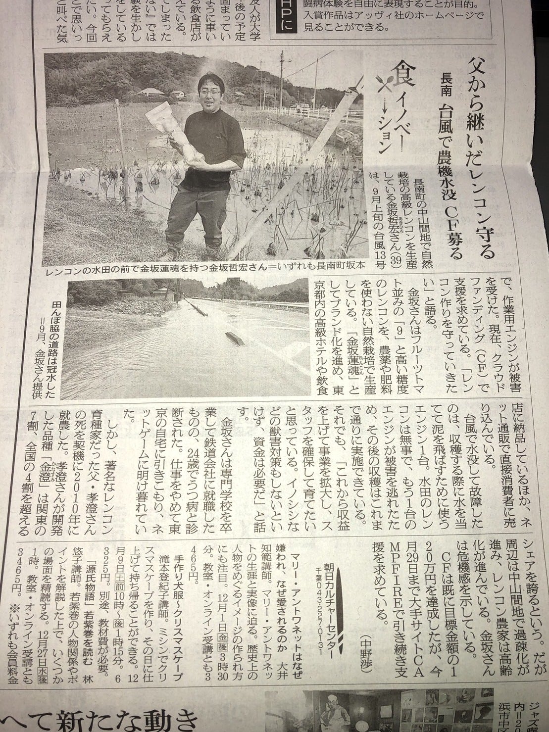 この度は大変たくさんのご支援をいただき、目標の120万円を達成する事ができました。大変ありがとうございました!また、遅くなってしまいましたが、11/21(火)の朝日新聞さんの千葉版に取り上げていただきました。