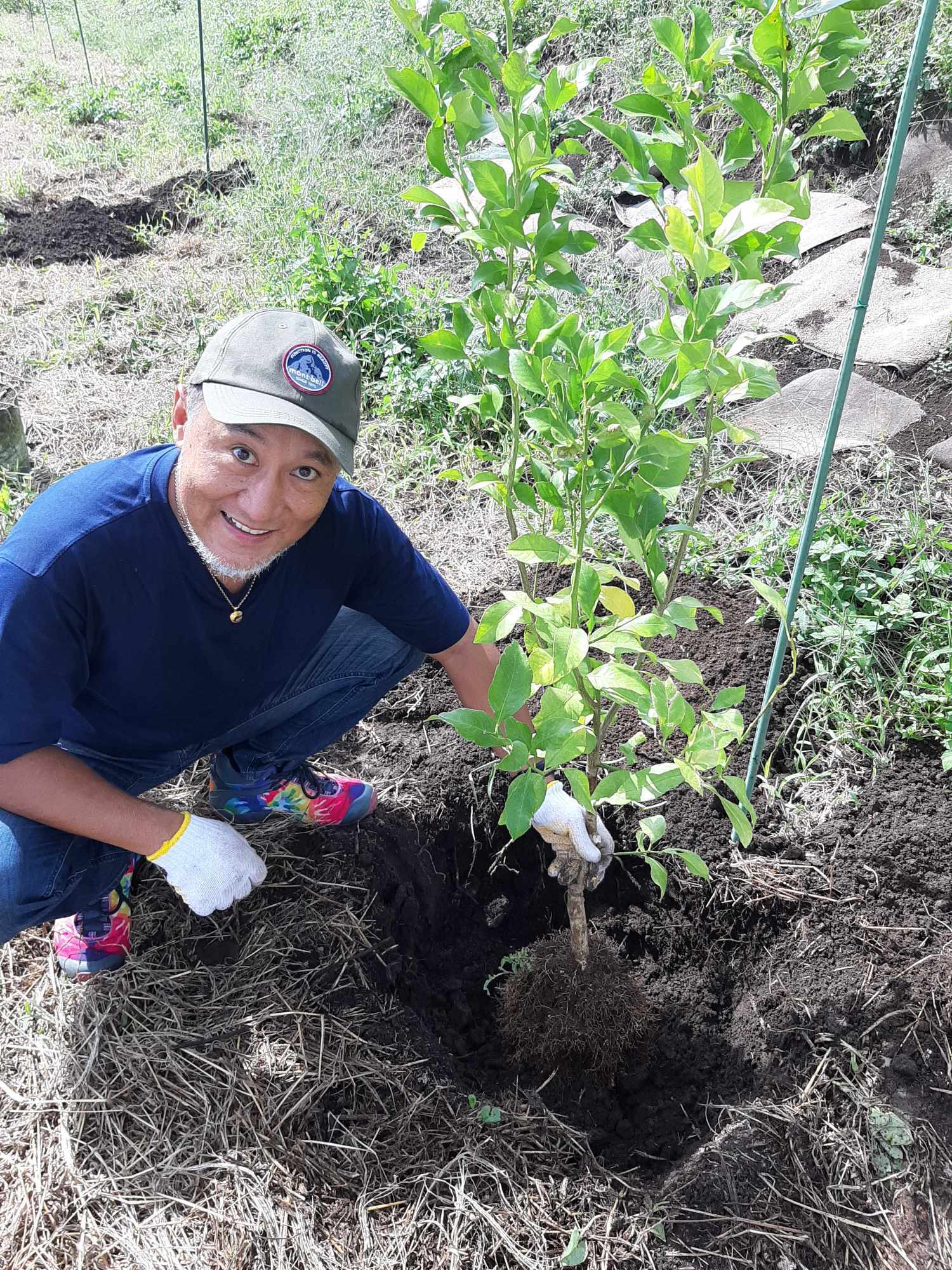 弊社代表中越のお友達で湘南レモンのオーナーになってくださった一方から、早くレモン植えたい!と熱いメッセージをいただいたので、農園の草刈り中にお越しいただいて早速植えました。